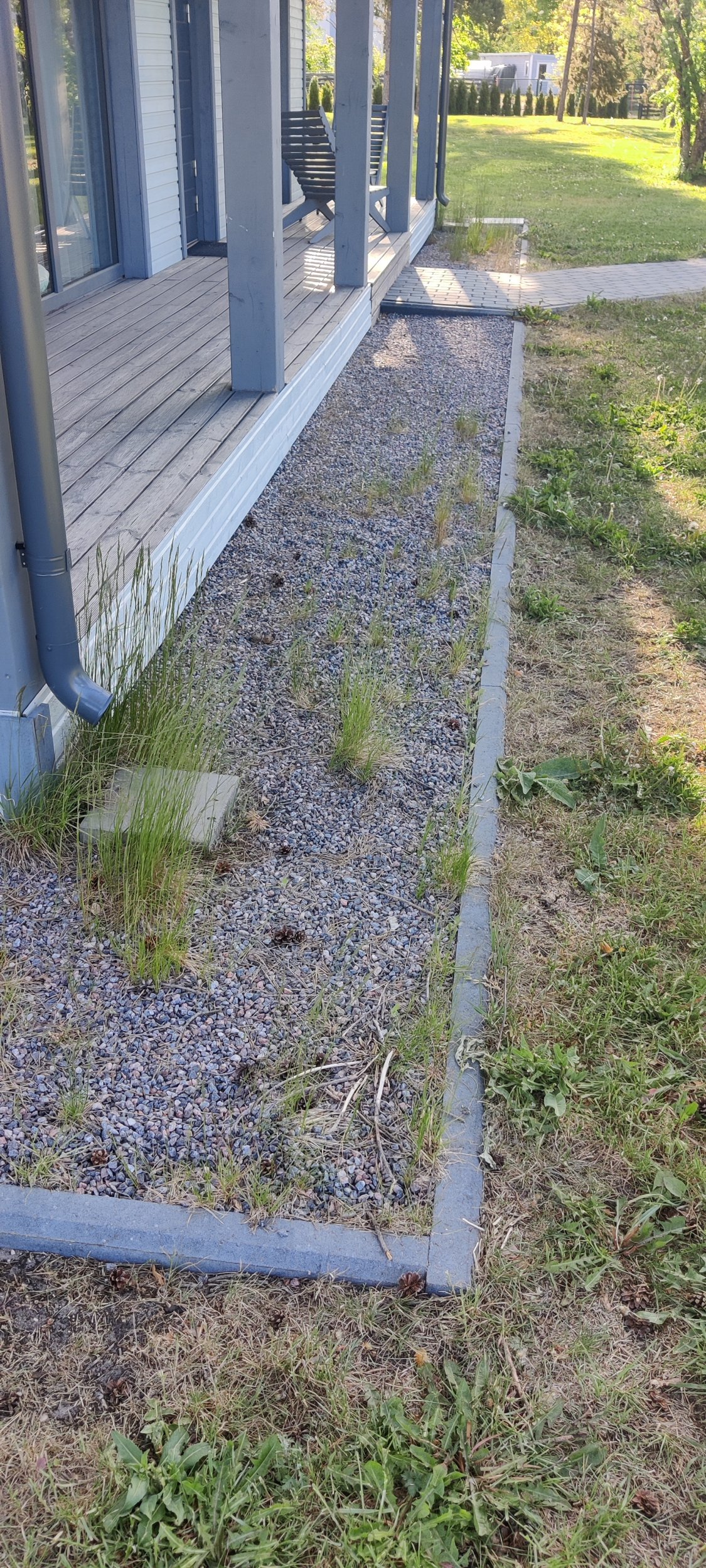 Maja pandus on hetkel geotekstiilil 4-5cm graniitkruusa.