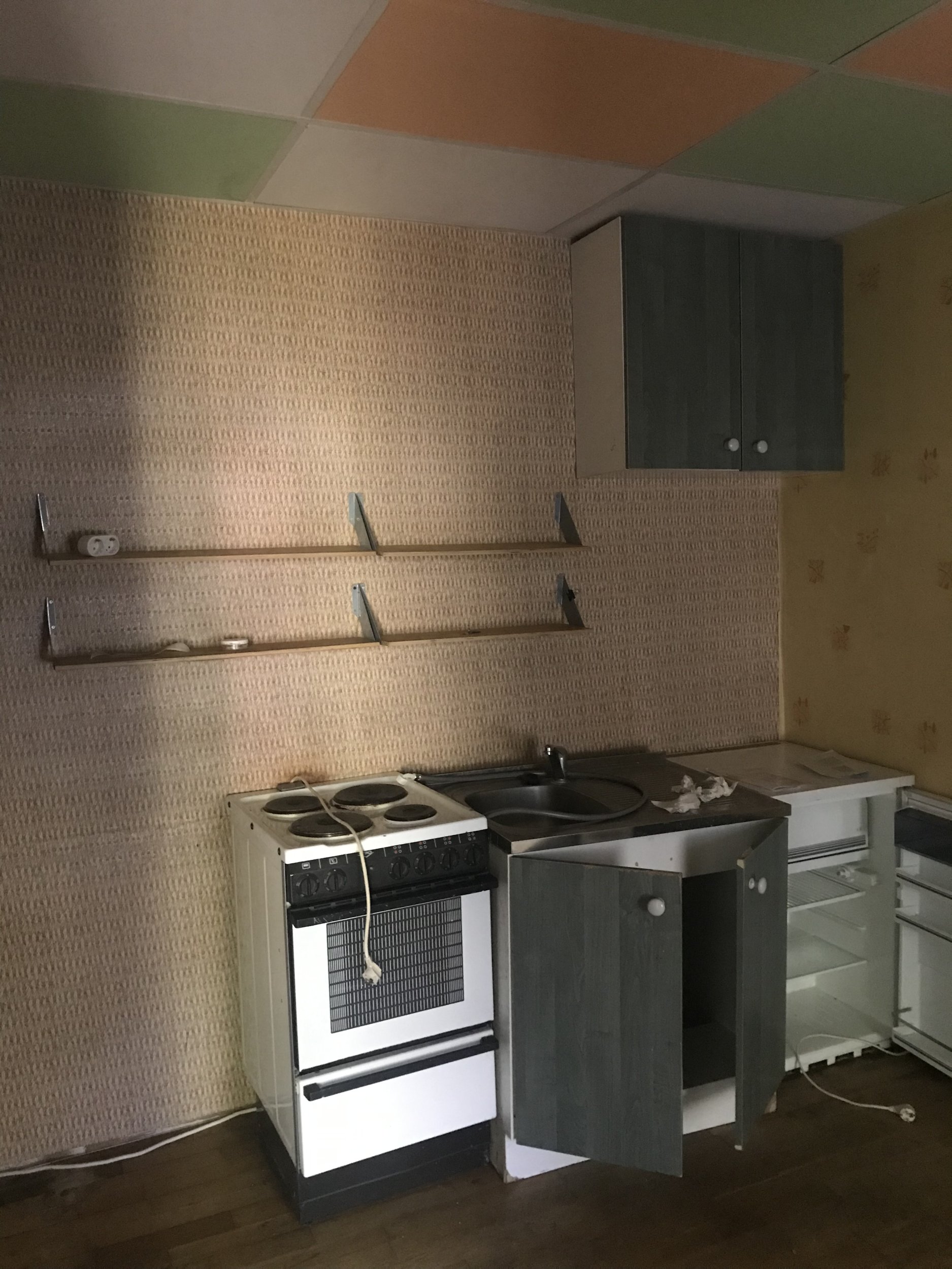 25 ruutm. Vaja oleks: Elektritööd: lisapistikute paigaldamine, ripplae vahetus, paigaldada uus parkett ja viia ühele kõrgusele, pesemisnurga tekitamine (boiler ja wc olemas), tapeetimine, prügi äravedu.