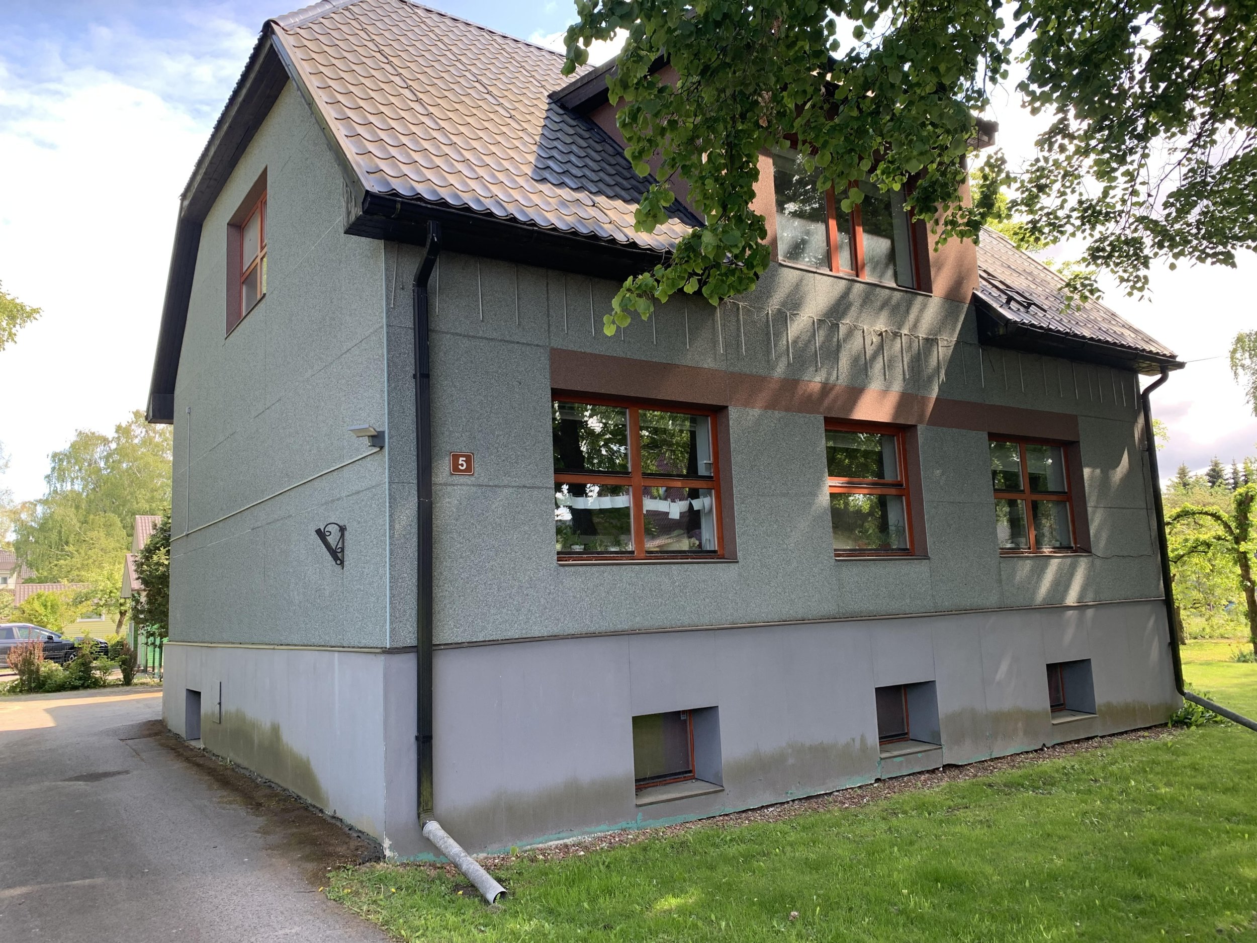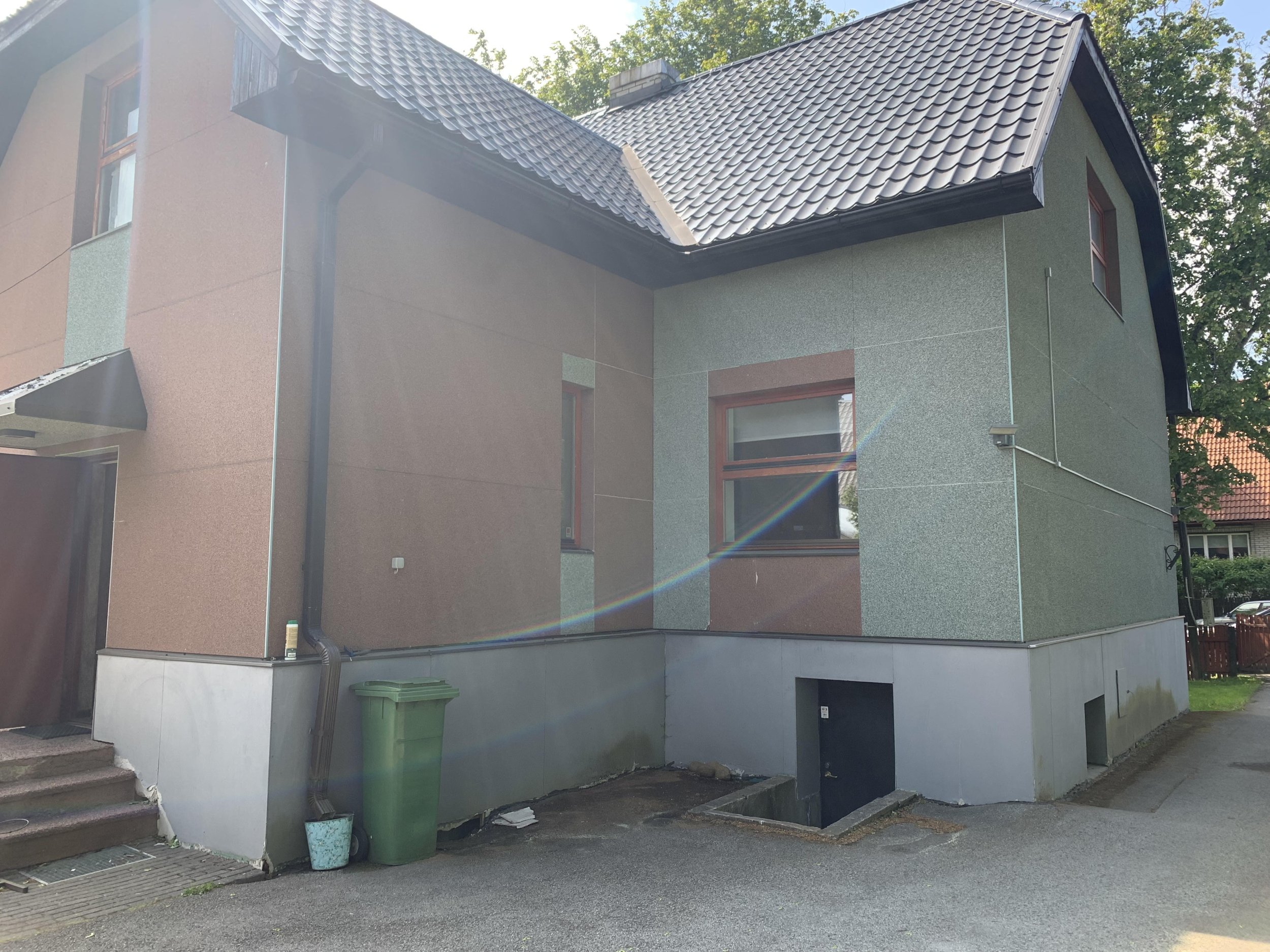 Enne tööde algust paigaldatakse kogu hoone täisperimeetri ulatuses tellingud. Töö sisu: Vaja eemaldada ja utiliseerida fassaadi ning sokli tsementkiudplaat. Eemaldada ja utiliseerida seintelt kogu soojustus. Seintelt ja soklilt eemaldada ja ladustada puitkarkass. Kaevata maja perimeetri ulatuses maapind 40cm sügavusel ühe labida laiuses.