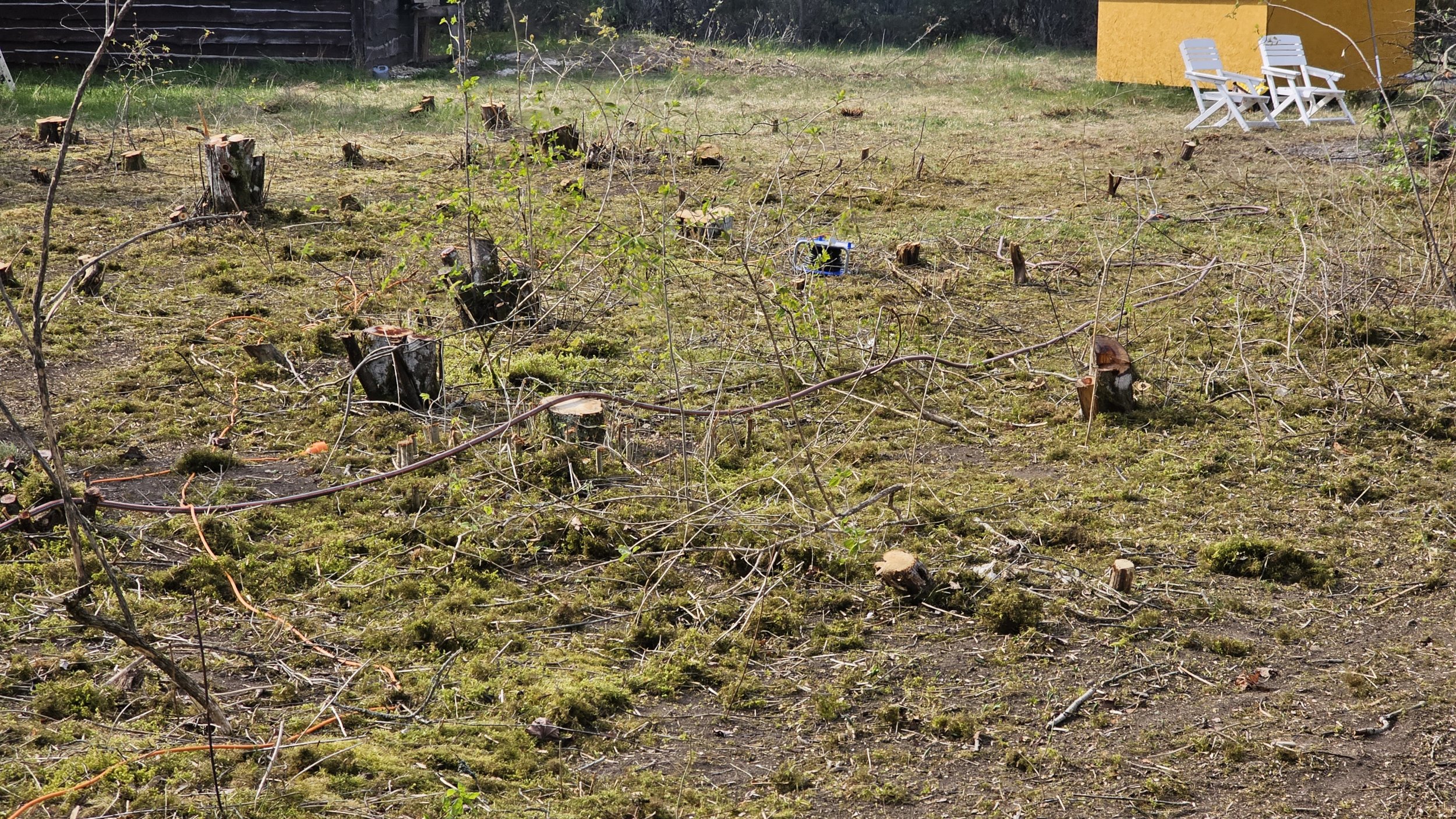 750m2 pealt oleks tarvis kõik kännud välja saada. Enamus on ca 10cm läbimõõduga. ca 10tk on läbimõõduga 30-40cm.
