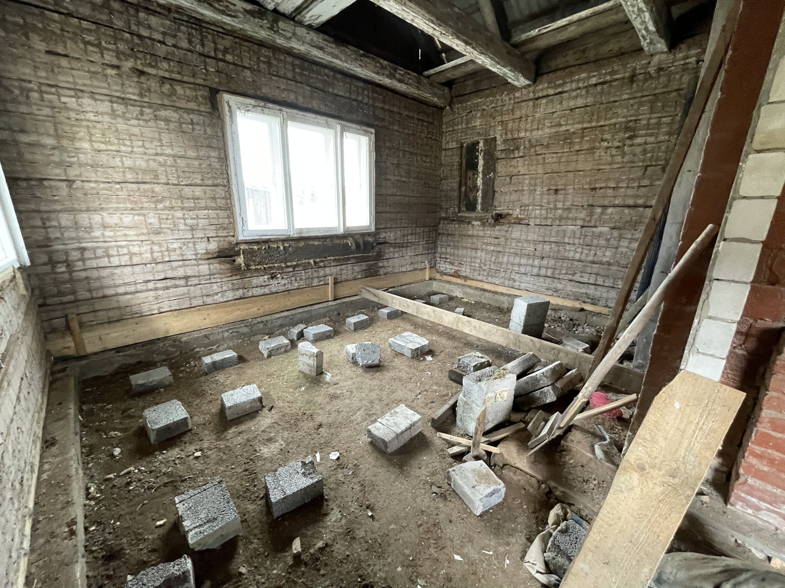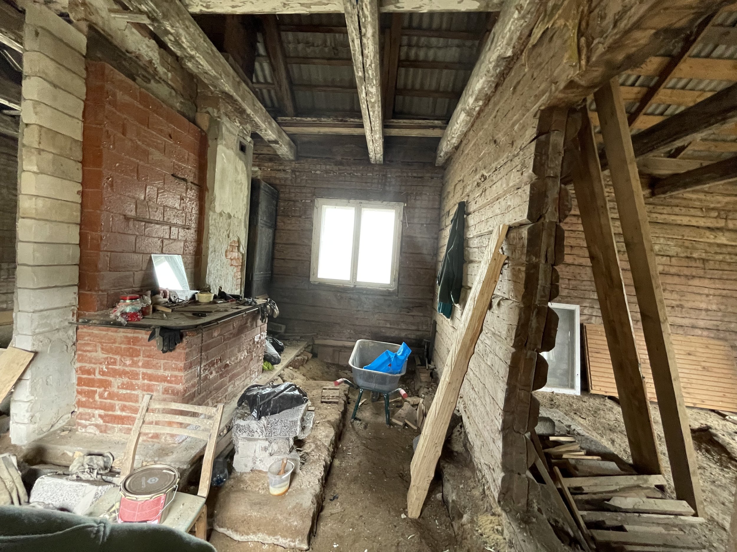 Vana palkmaja, osati vana laudis peal, sees ainult ahi ja pliit, põrand puudub (muldpõrand), katusel kasutusel eterniit, puitaknad ees, puuduvad võrguühendused - ehitusalase pindalaga 73m2 ei tohiks olla üle 5m kõrge, saab täpsustada.