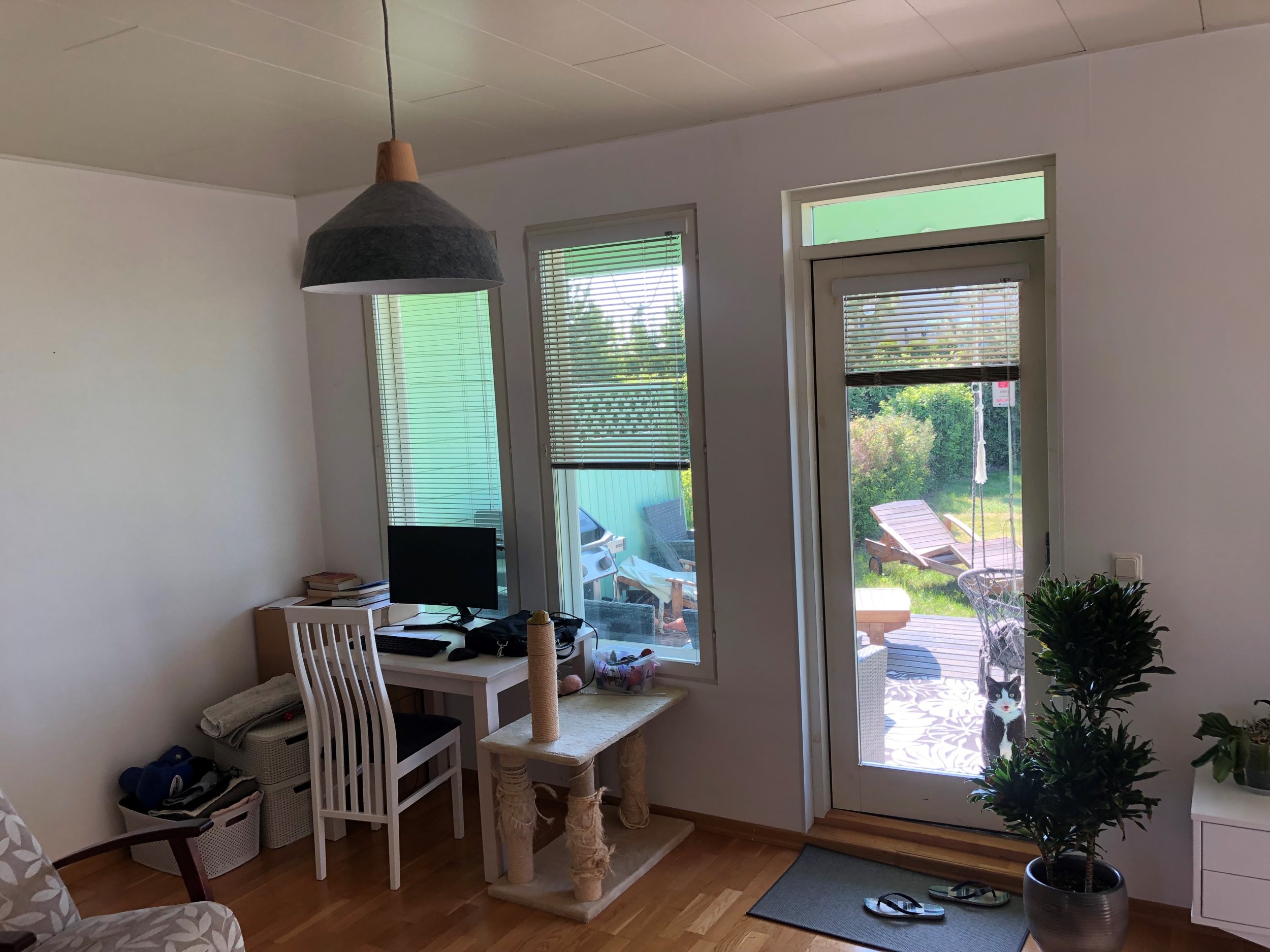 Põrandapind toas 38,3 rm, seinte kõrgus 2,60 m, asub paarismaja esimesel korrusel.