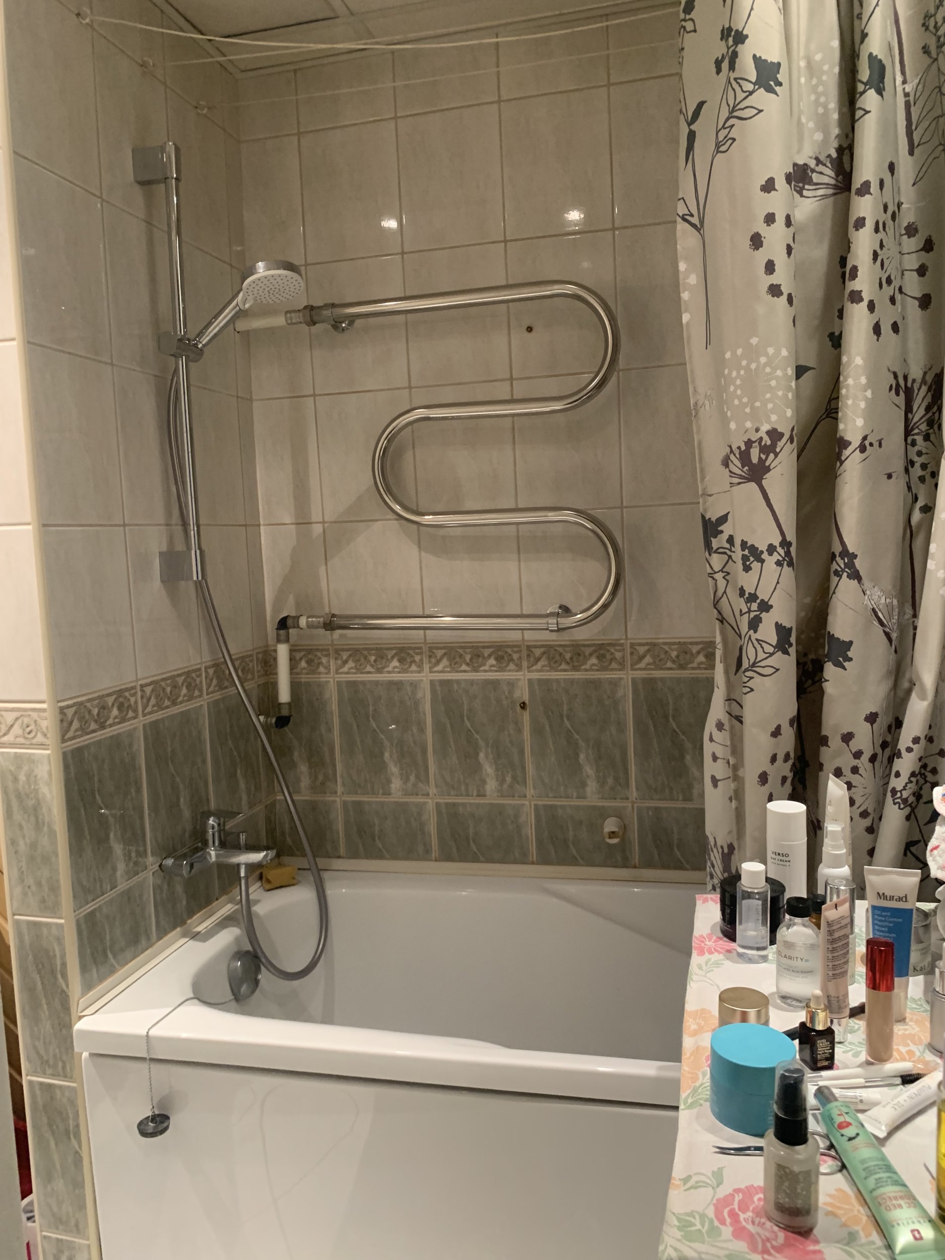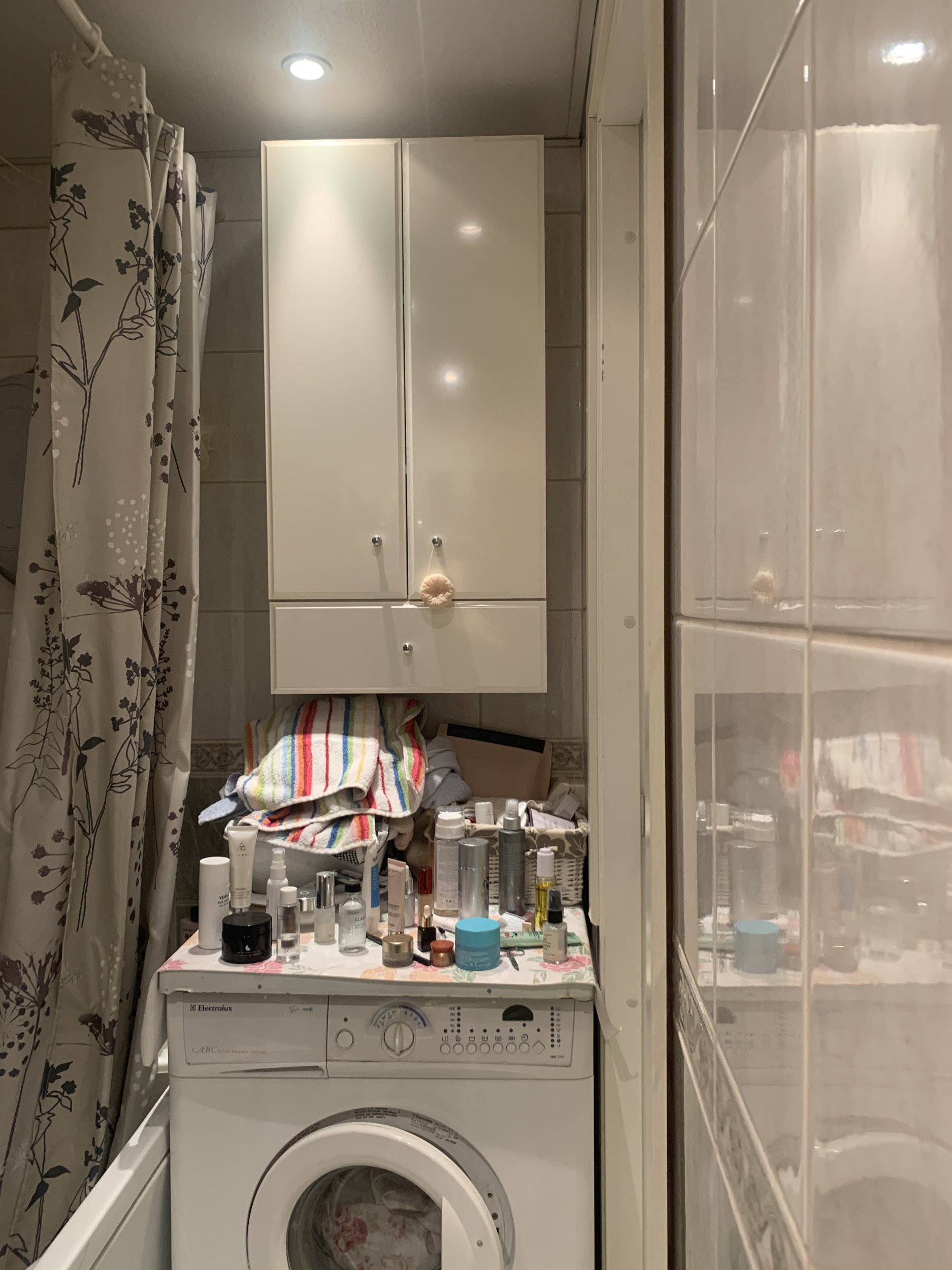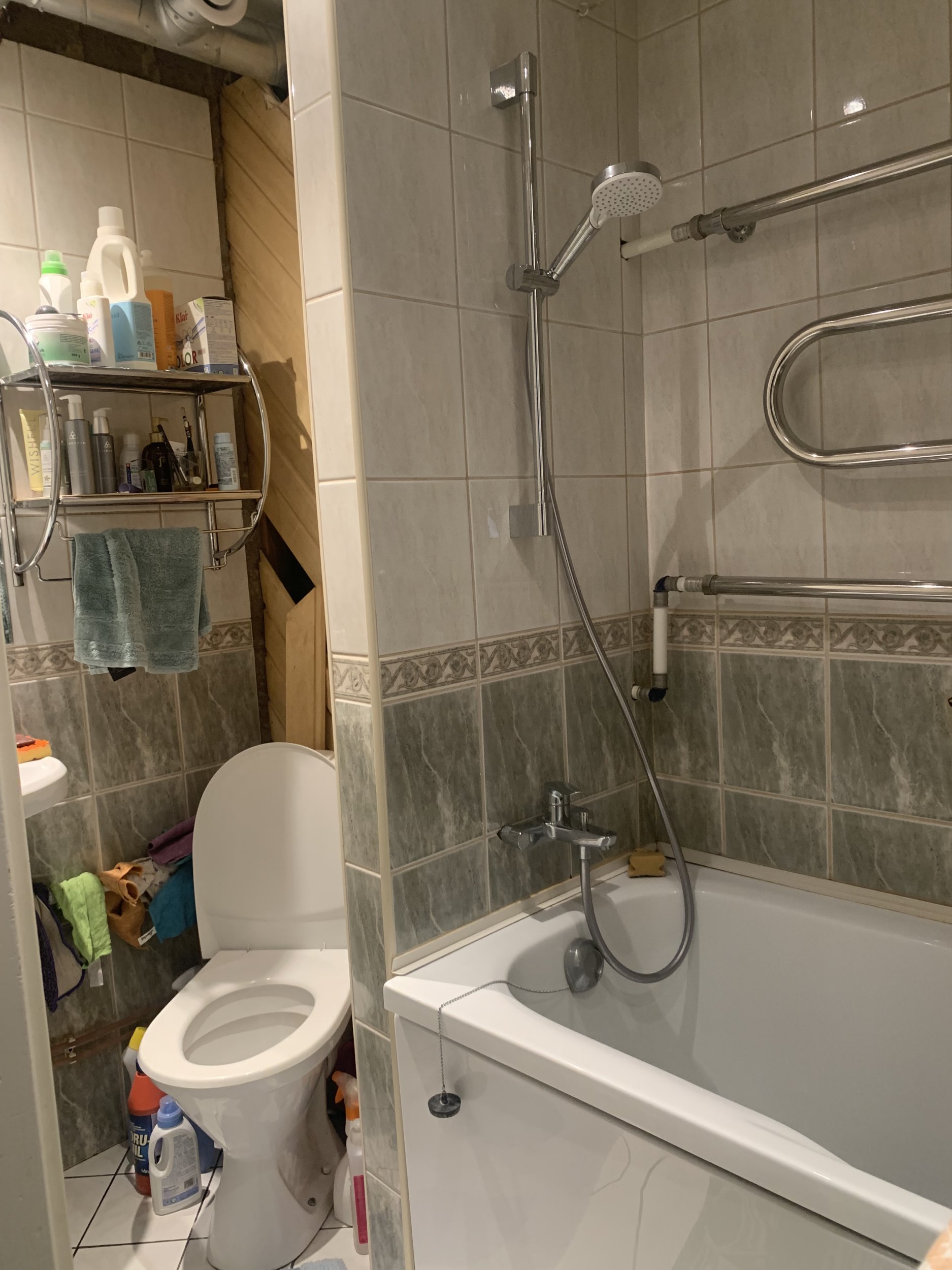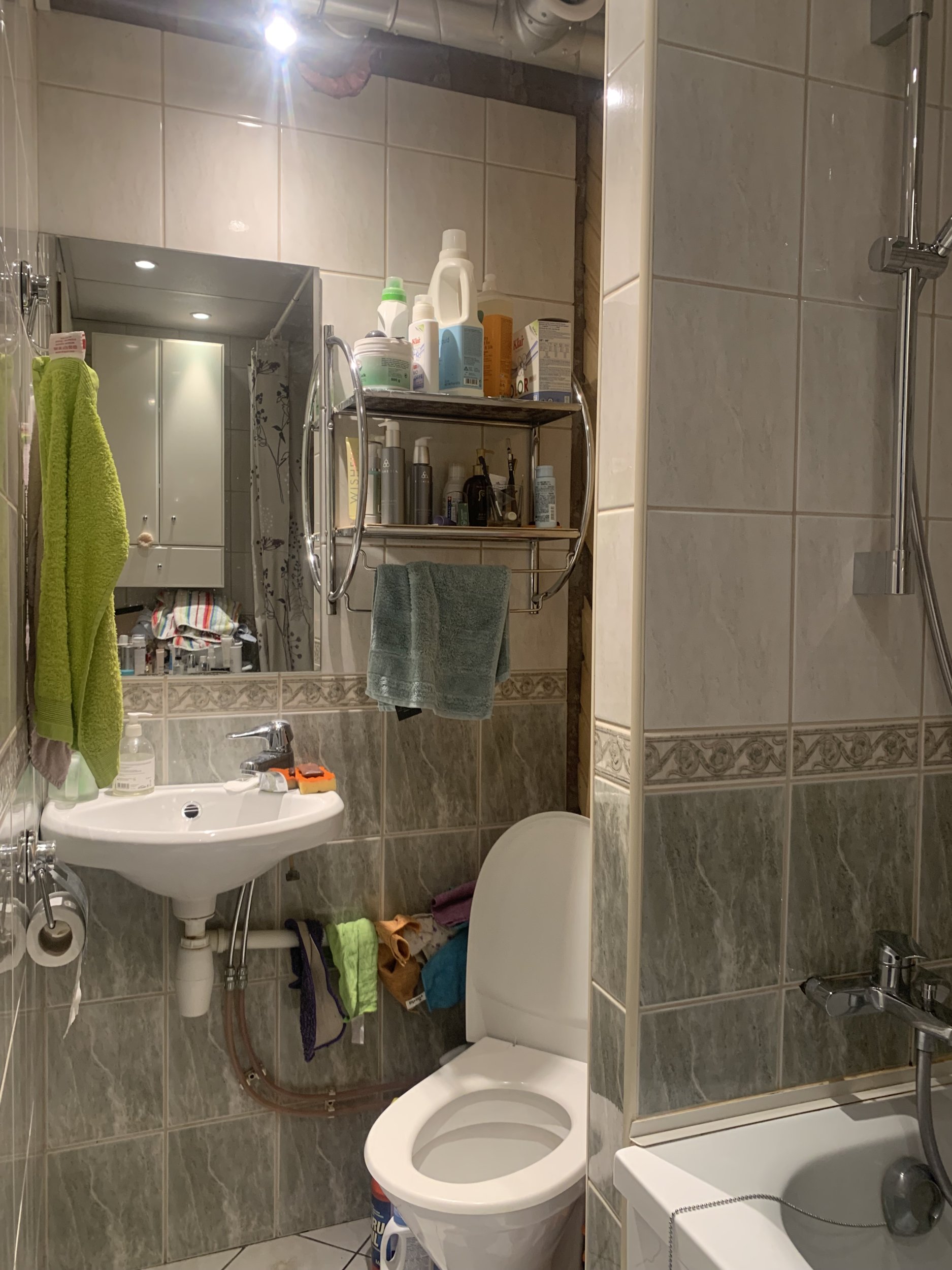 Vannitoa suurus 4 m2. Wc ja vannituba kokku ehitatud. Vanast remondist möödus üle 20 aasta. Hetkel käib kortermaja renoveerimine. Tööde käigus paigaldati lakke ventilatsioonitoru, mis on suurem kui olemasoleva lae kõrgus (ripplagi); sellega tuleks lagi alla alla lasta. Soov vahetatada olemasolevaid plaate seinas ja põrandal, valamu, wc-pott, osa santehnikast.
