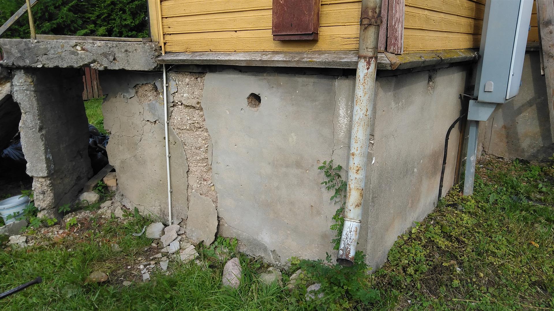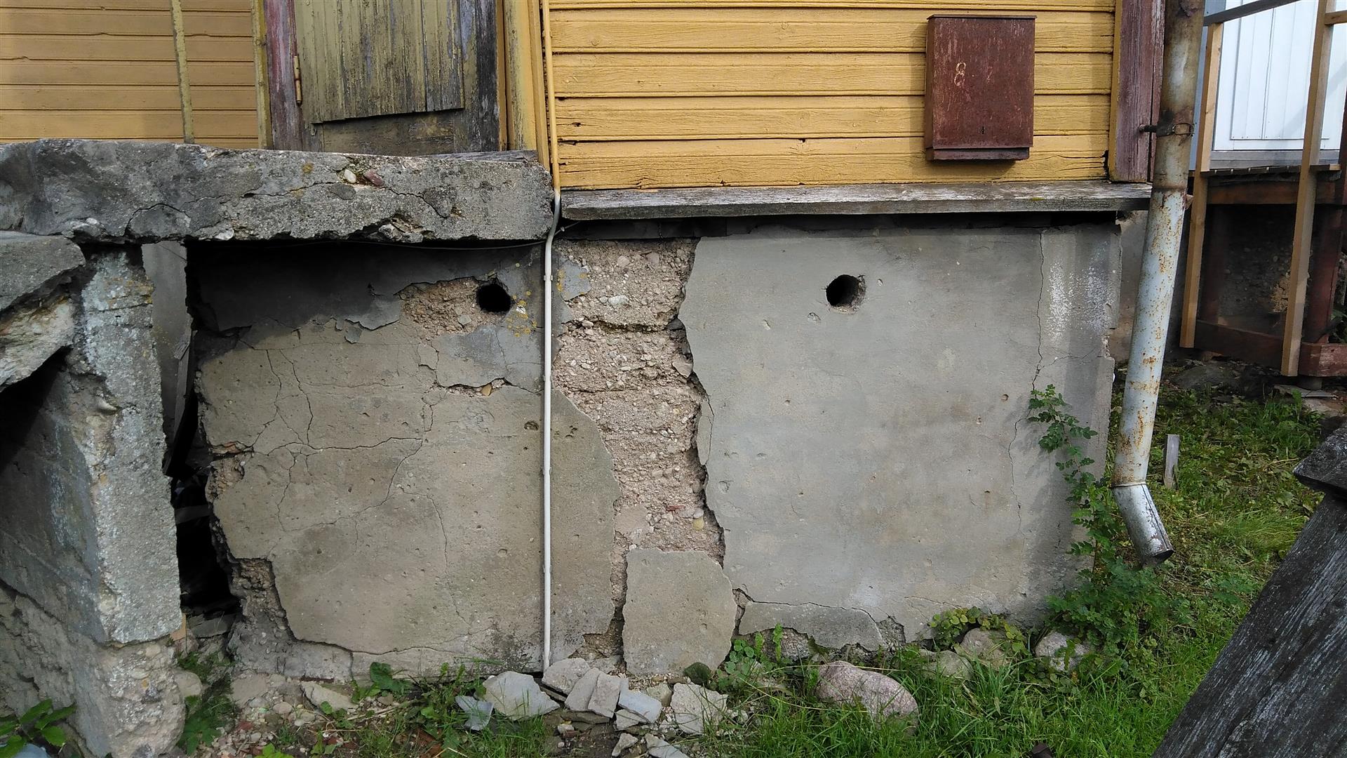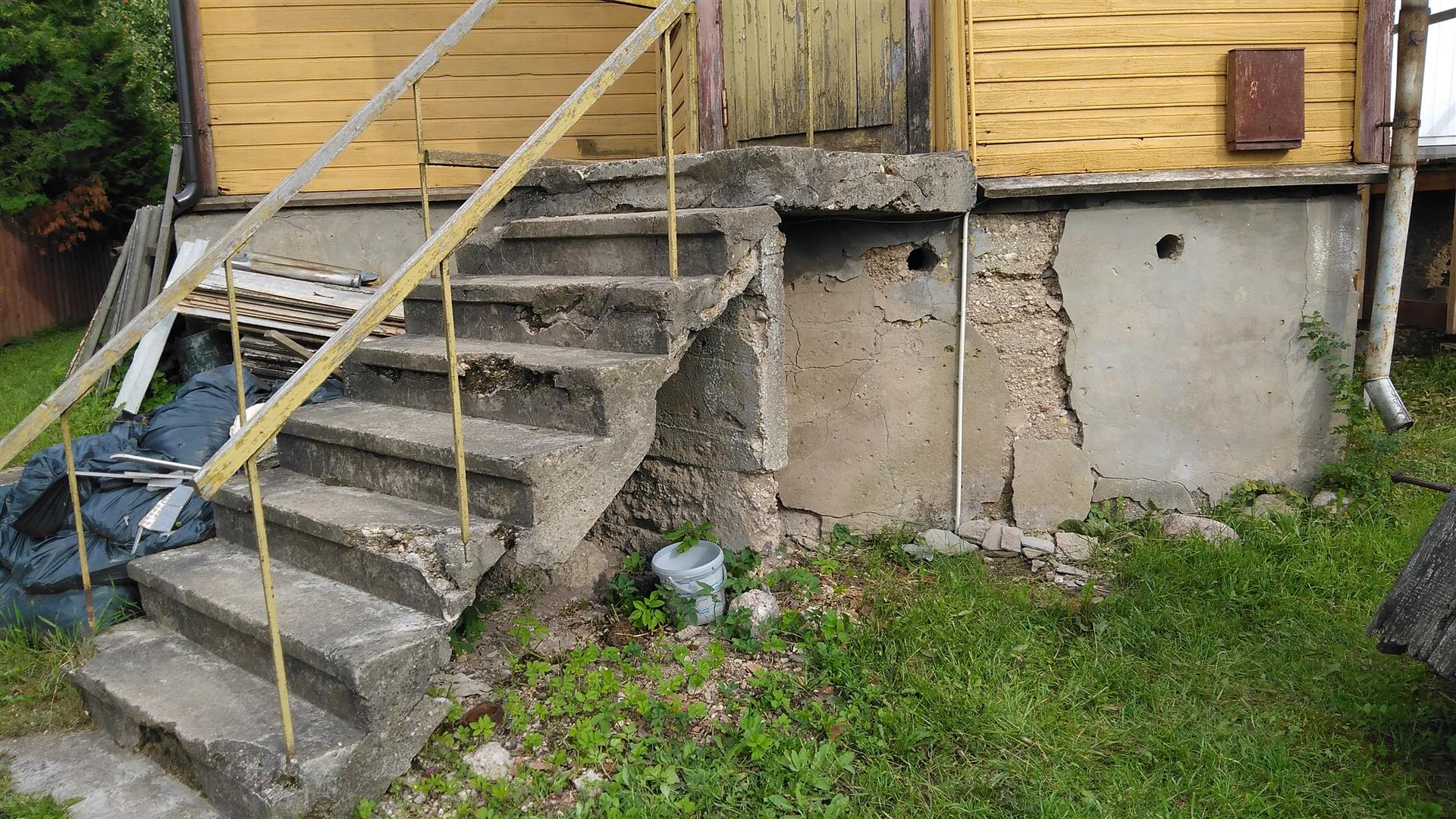 trepikoja vundamendi täiendav toestamine, välistrepi mademe rihtimine, trepikoja puidust alusvöö osaline vahetus