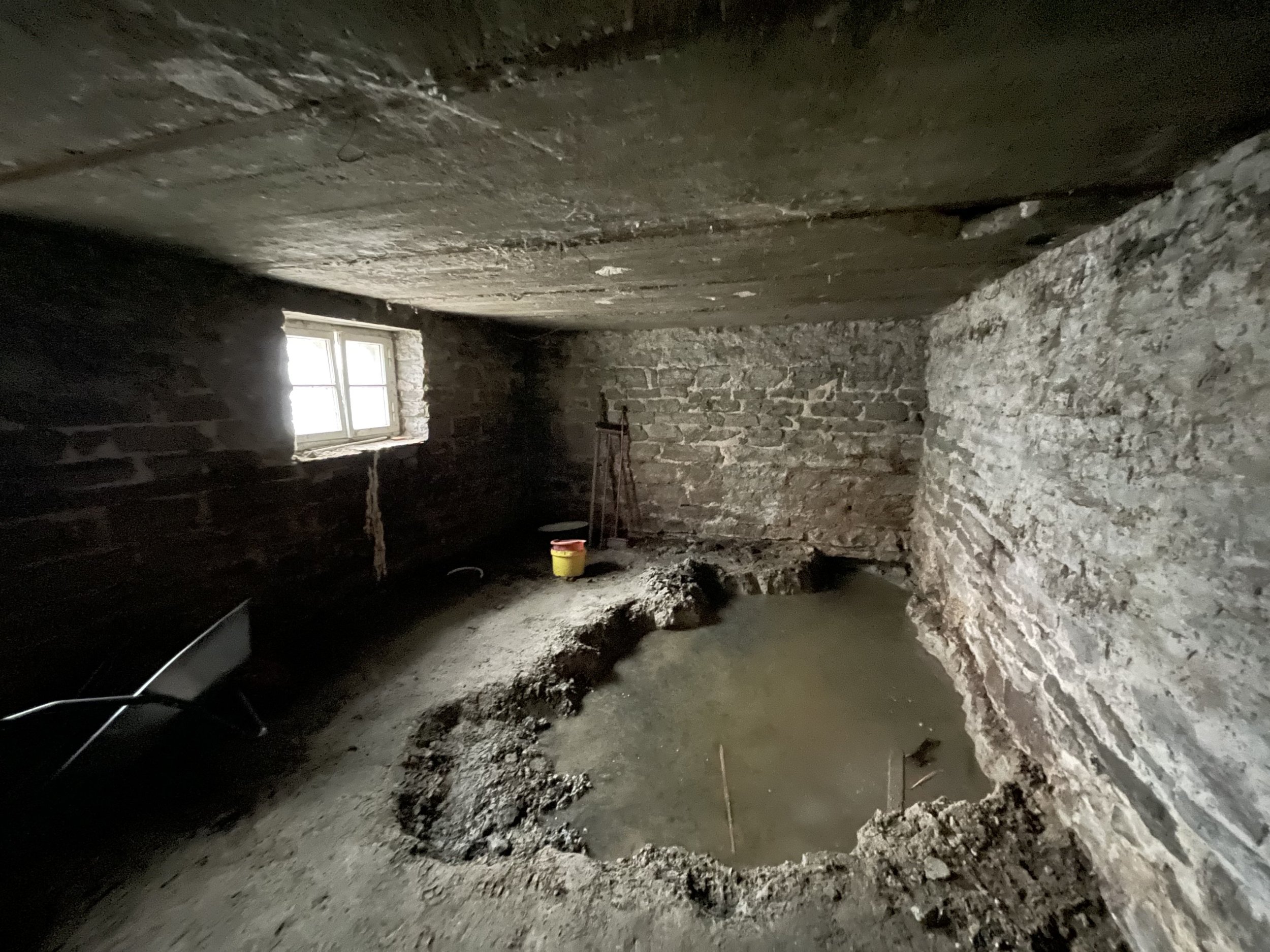 Praeguseks on põrand eemaldatud, alles vaid liiva-savine pinnas. Pinnasevesi on kõrgel kevadeti, võib olla veel toode tegemise ajal niiske/kohati märg.