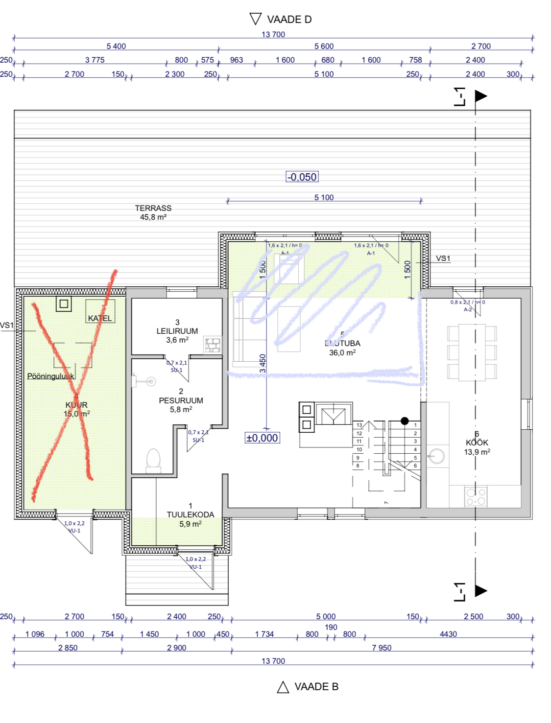 -Punane maha tõmmatud ala joonisel ei kuulu tööde hulka.
