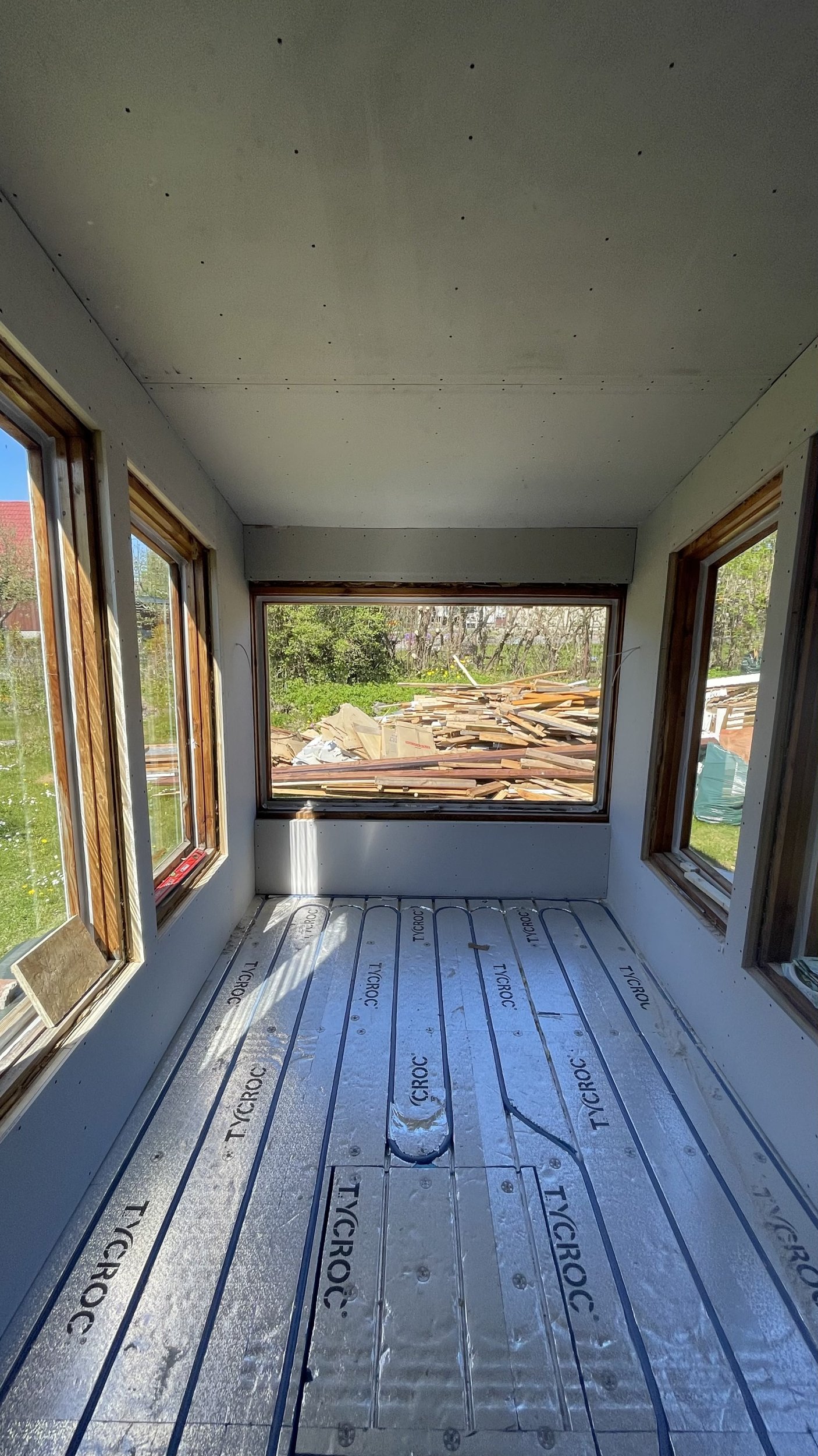 Vaja oleks paigaldada kahes jaos laminaati. Esimene jagu koheselt paigaldatav, teine jagu veidi hiljem, et maalritööd saaks eest minna.