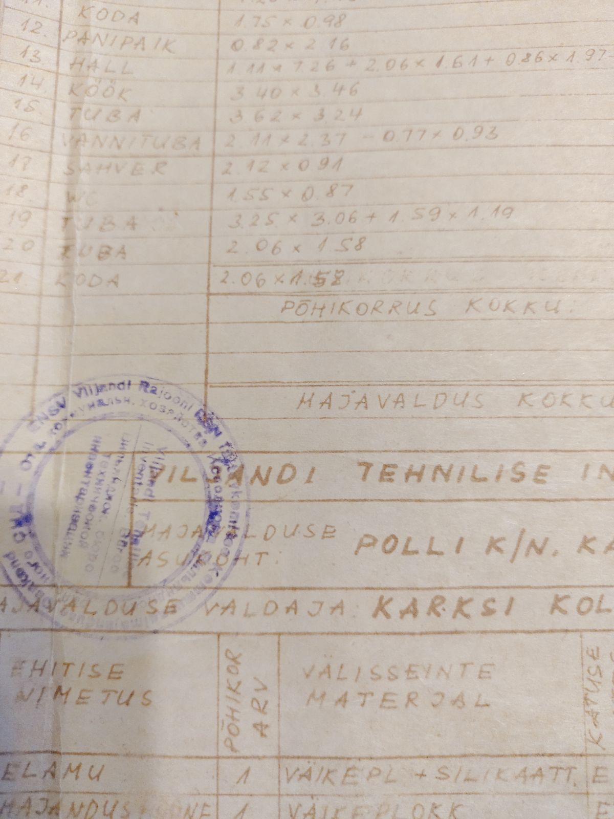 | Ehitusmaterjalid: | Töö tegija poolt |