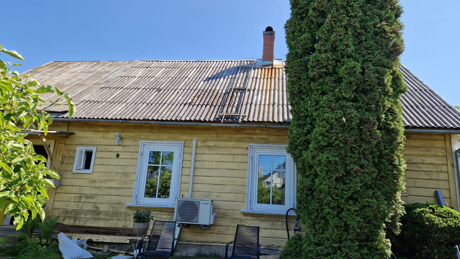 Olemasoleva katus 1/3 plekk ja 2/3 laastukatus mis kaetud eterniidiga.