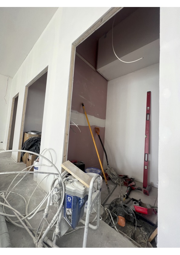 Seintel ja lagedel pahtliparandused + kruntvärv. Laepinda ca 140m2 ja seinapinda ca 180 m2.