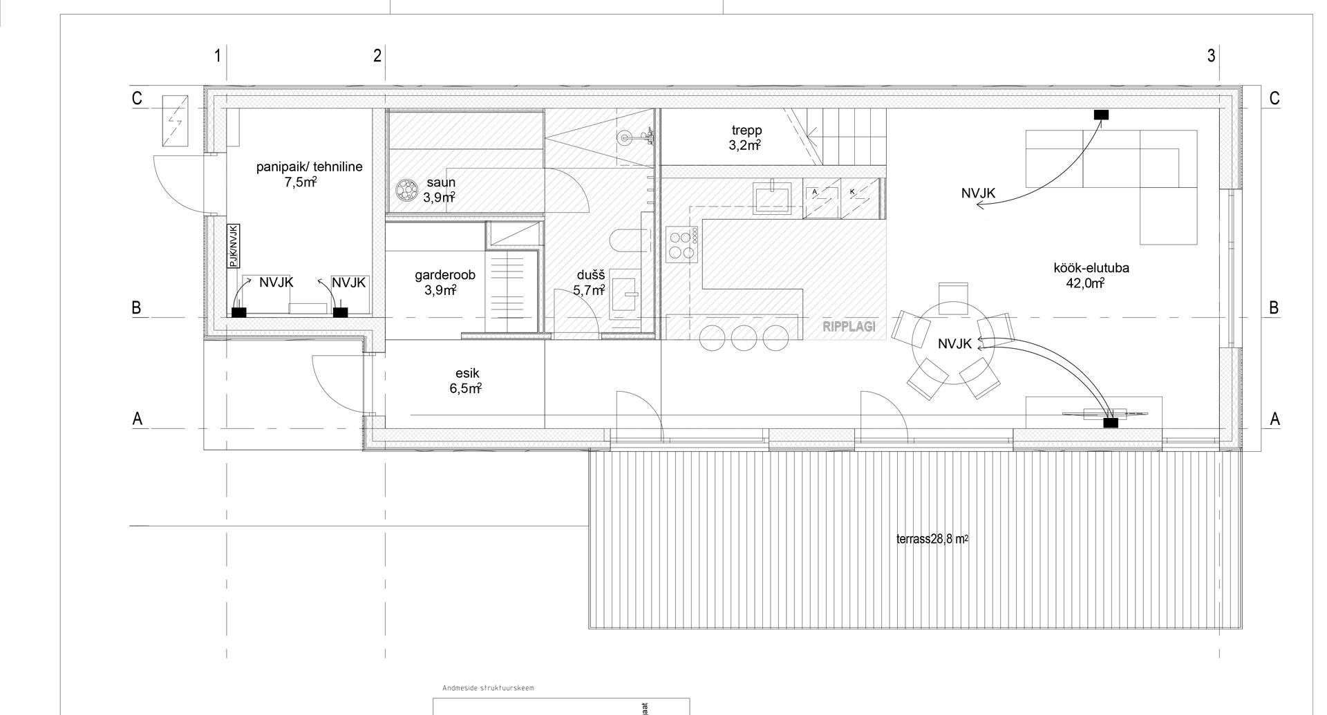 Maja seinad on Fibo5 plokkidest. Vahelagi ja katuslagi õõnespaneelidest.