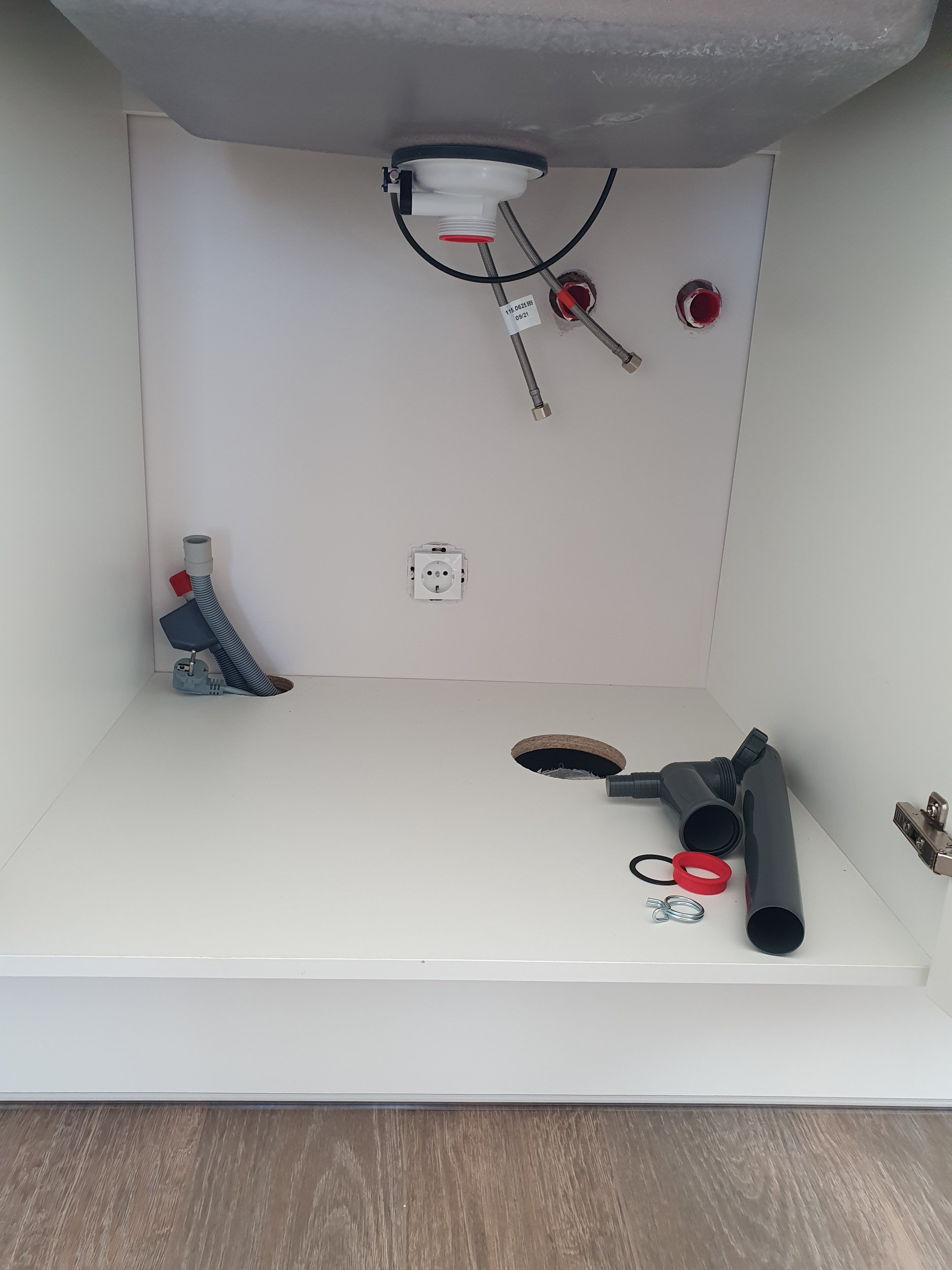 Ühendada köögikapis kraani veetorud ja äravool, lisaks nõudepesimasine vesi ja äravool.