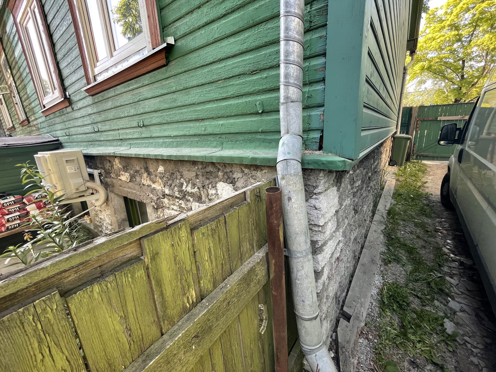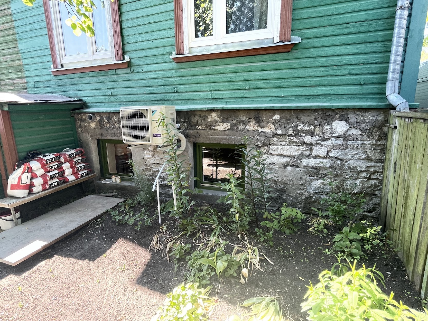 Kalamajas, Krulli kvartali vastas asuv 1/2 majaosa paekivi vundamendi hüdroisolatsioon, soojustus ja denaaz. (Keldri seinad seestpoolt märjad isegi praegu, kui on väga kuiv)