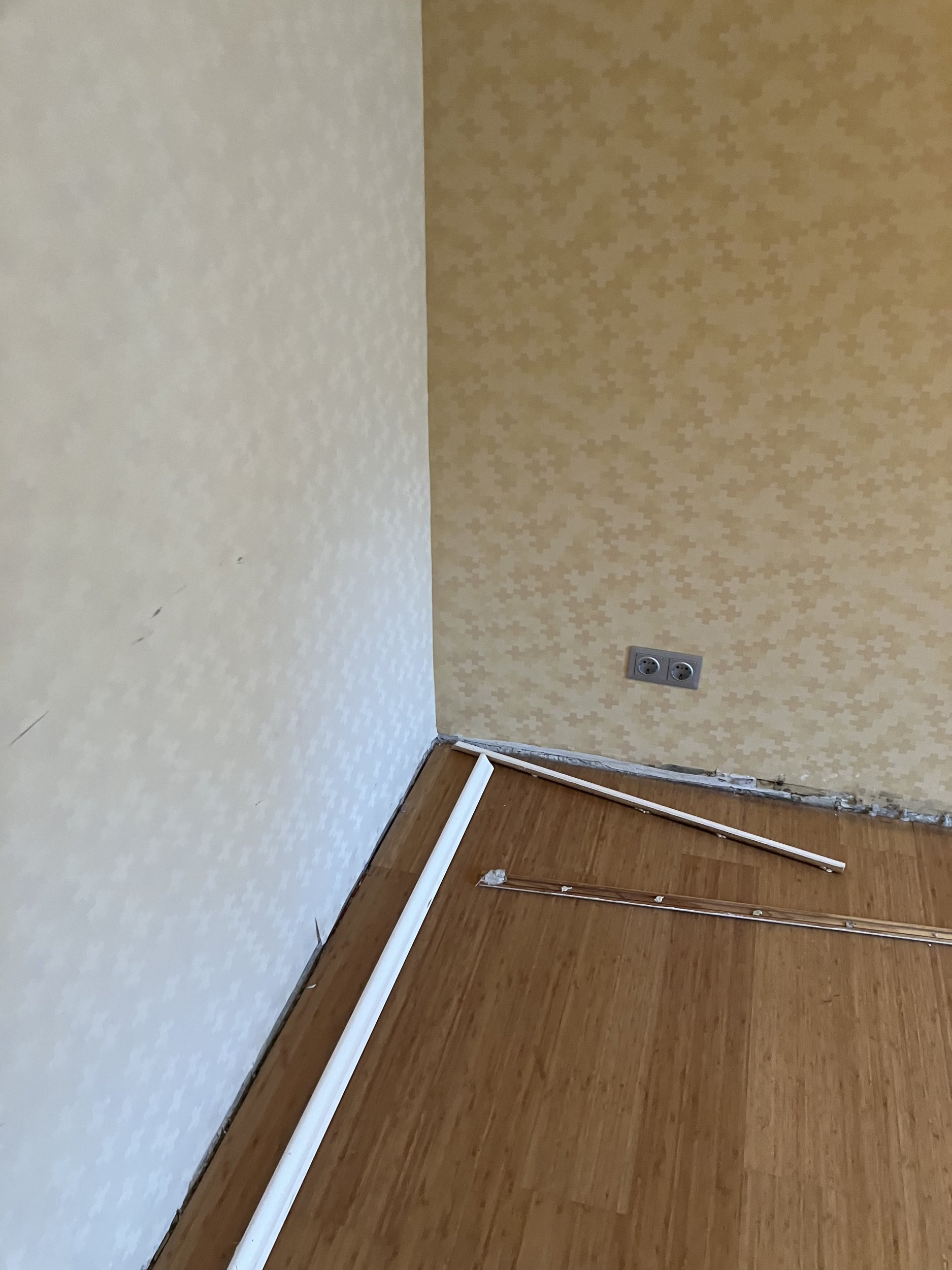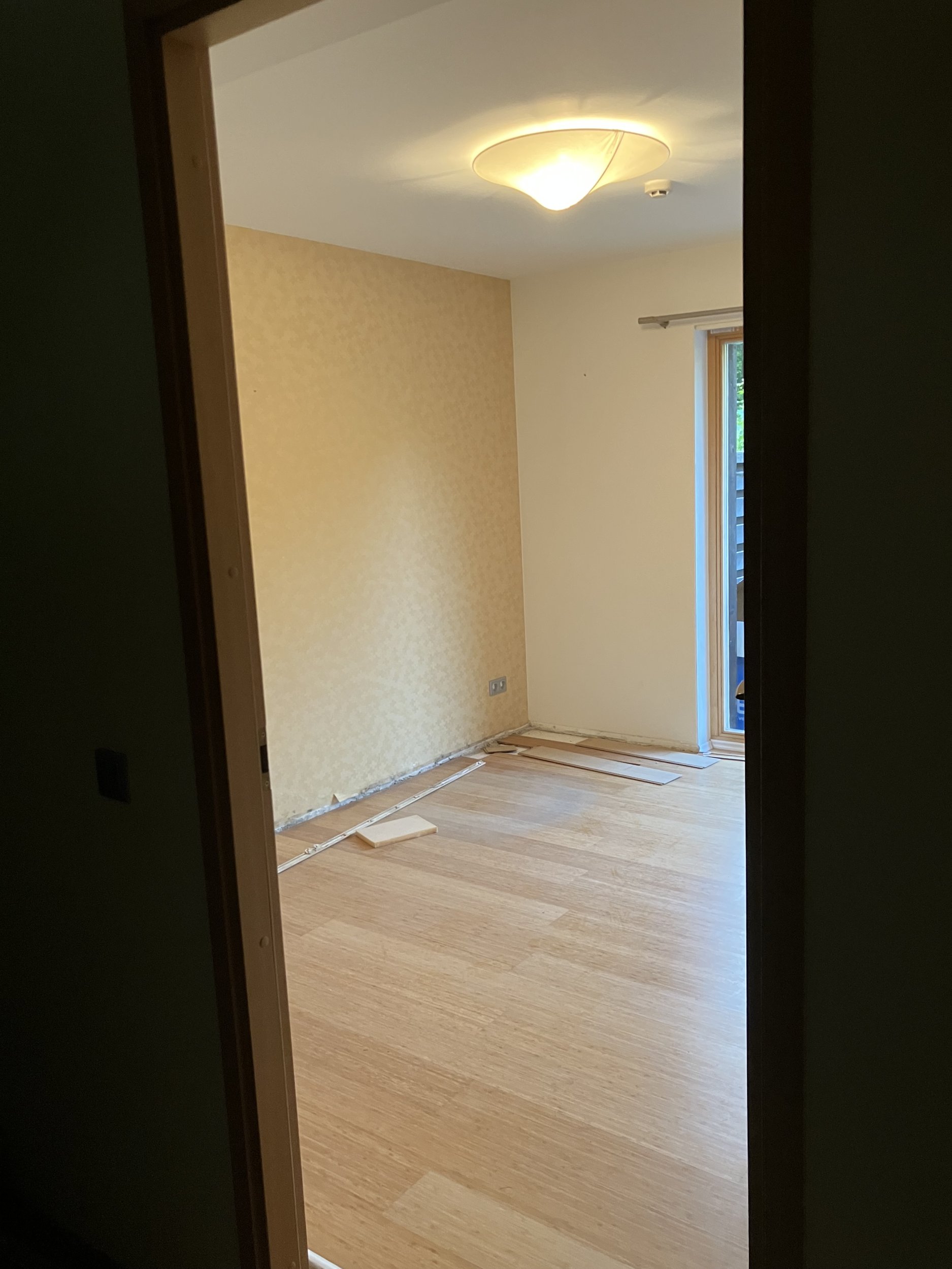 Põranda ülesvõtmine ja uue paigaldus, tapeedi eemaldus, pahteldustööd, seinte värvimine, liistude paigaldus. Lae värvimine.