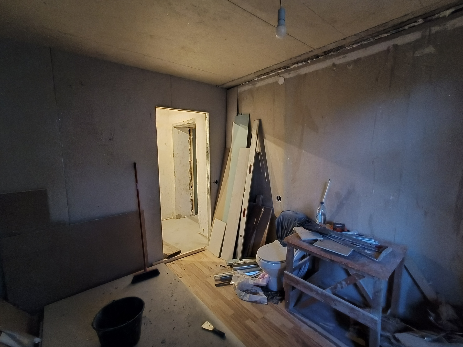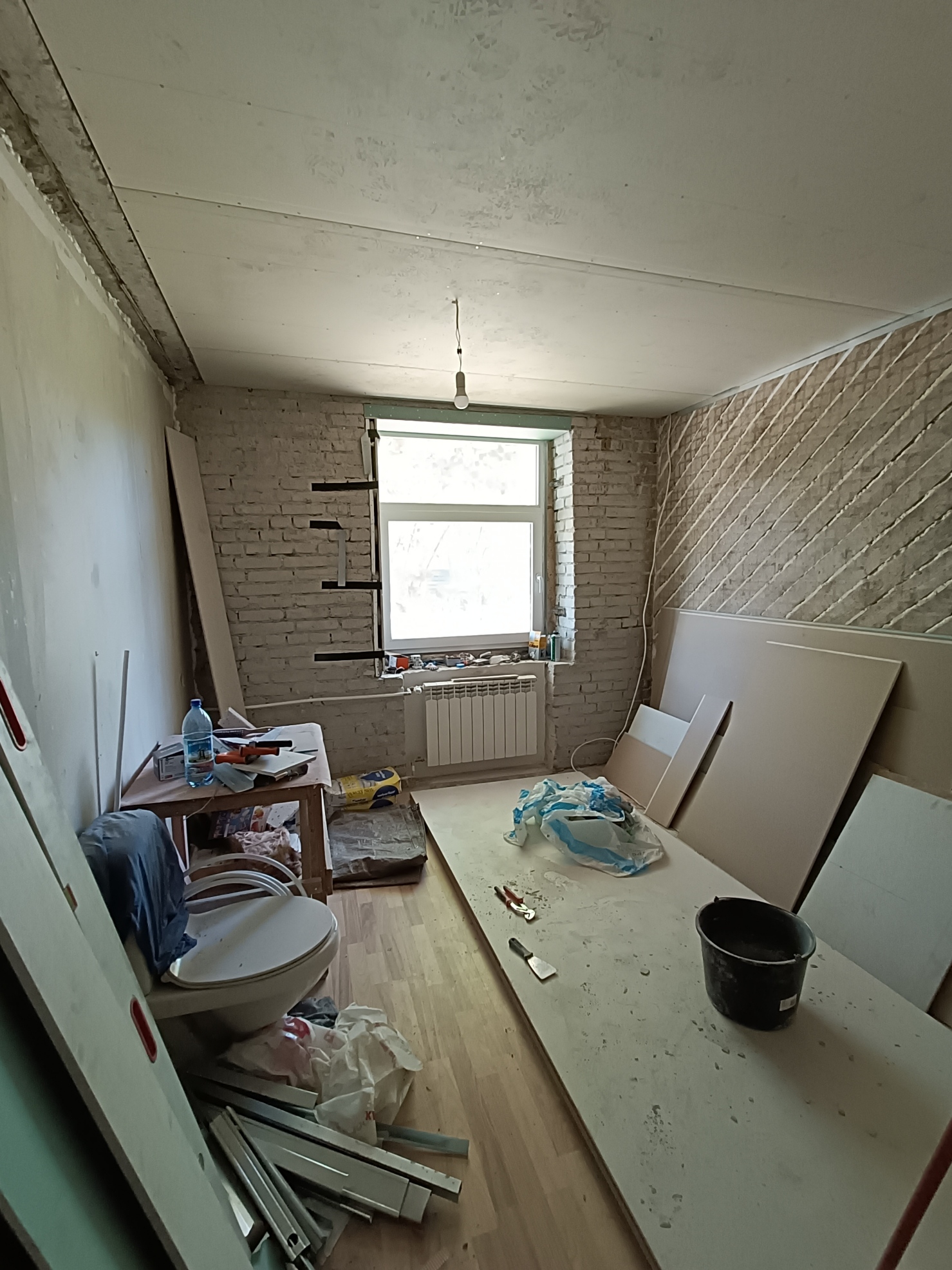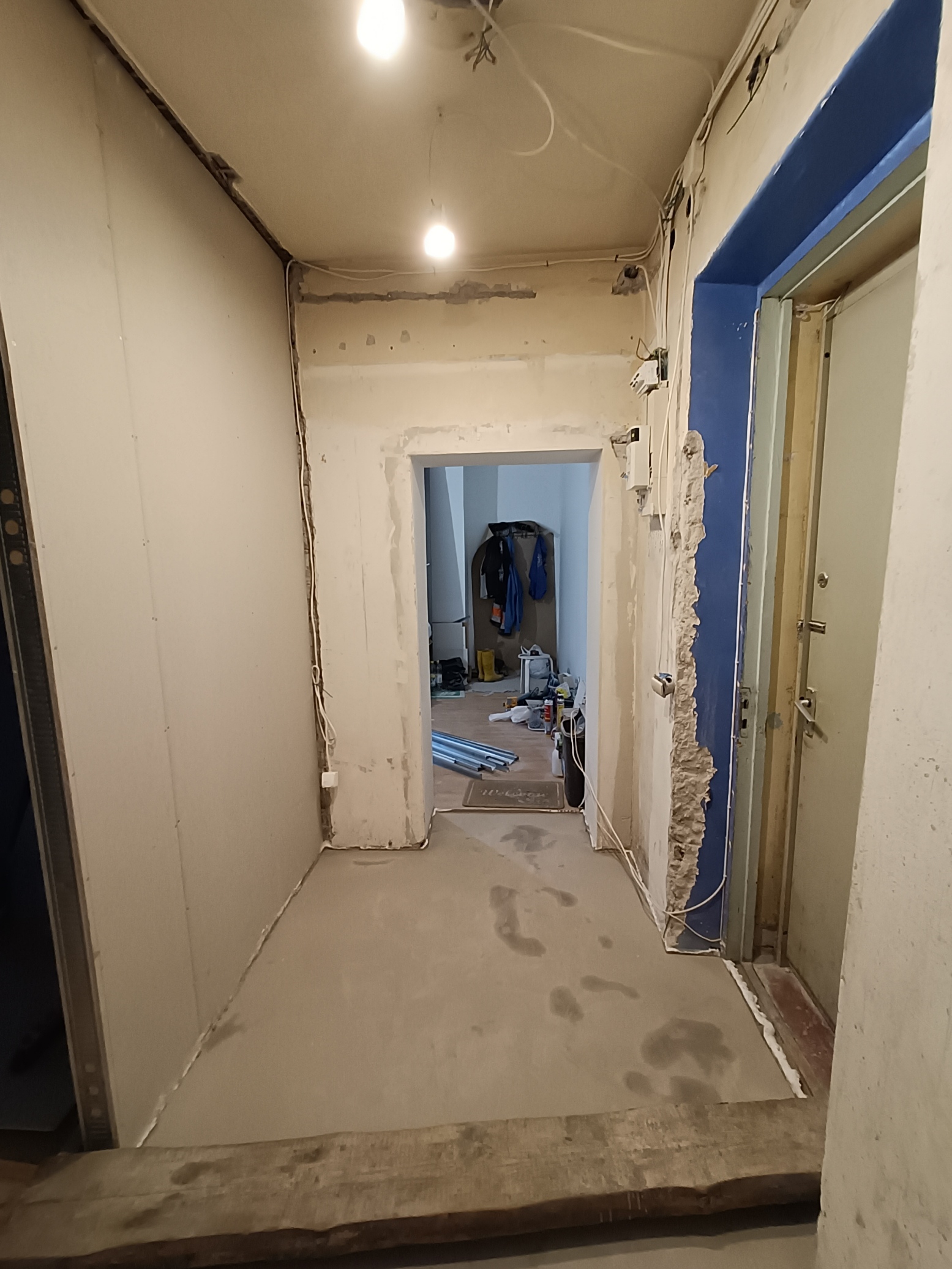 Vaja pahteldada ja lihvida seinad ning laed, aknaga sein köögis ja magamistoas krohvida, vannitoas teha hüdroisolatsioon ja mikrotsement põrandale ning seintele, esikus seinad krohvida ja lagi + kipssein pahteldada ja lihvida, elutoa seintel teha parandused ja vajadusel lauspahtel, paigaldada kööki, koridori ja esikusse põrandakate (vinüülparkett), paigaldada 3 ust. Tööde alguse ajaks on kipsi, vee ja elektri tööd lõpetatud.