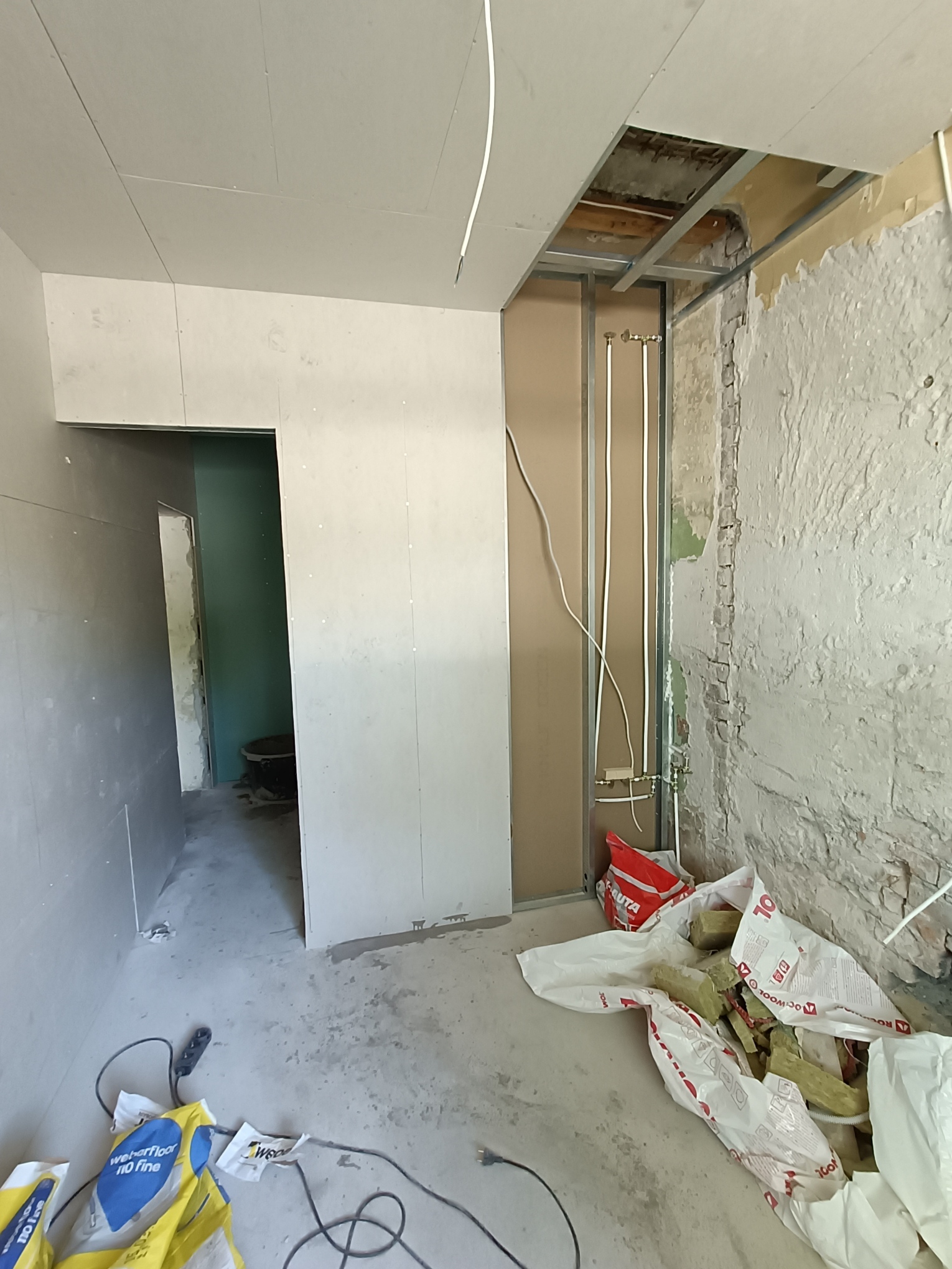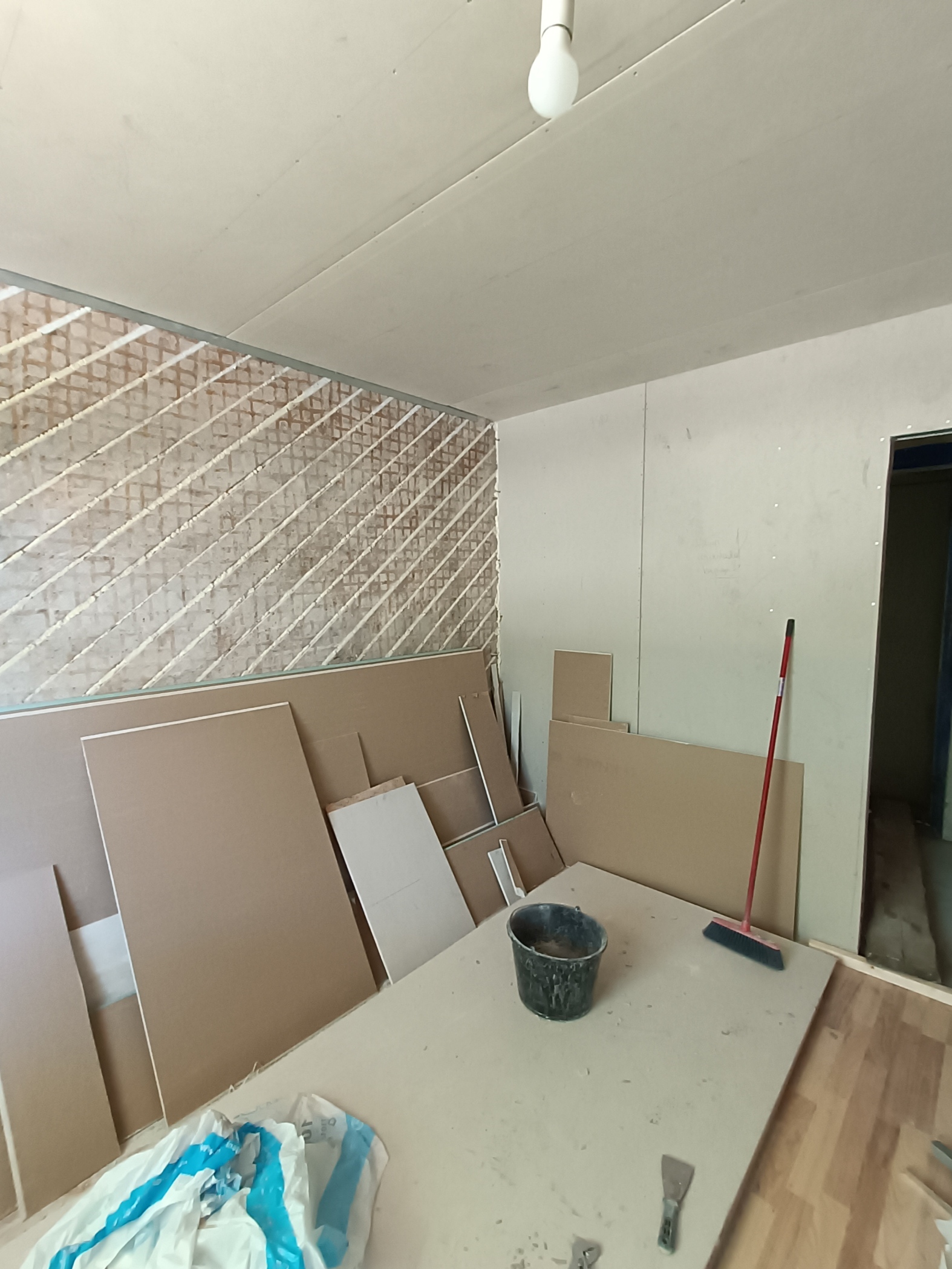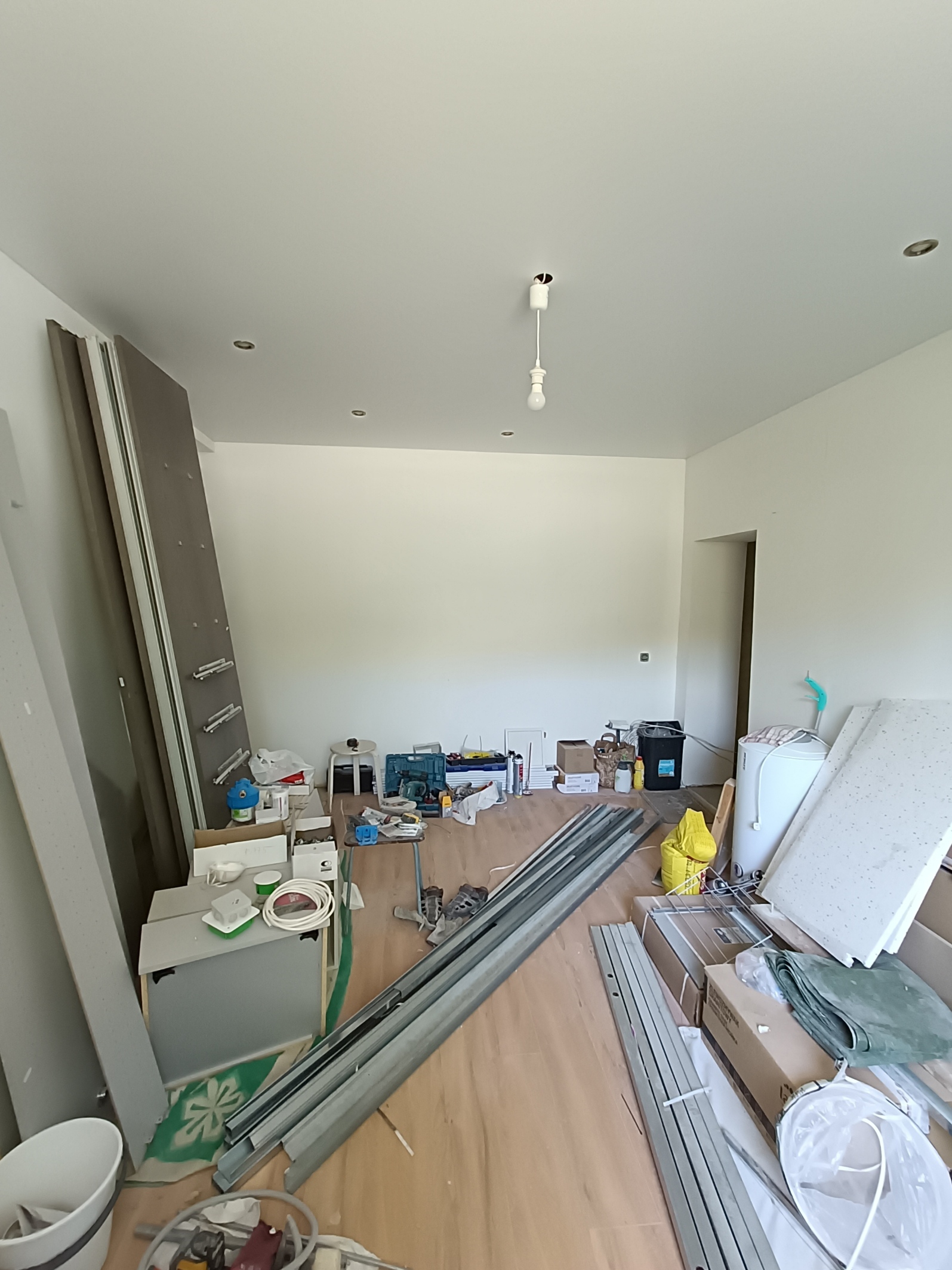Vaja pahteldada ja lihvida seinad ning laed, aknaga sein köögis ja magamistoas krohvida, vannitoas teha hüdroisolatsioon ja mikrotsement põrandale ning seintele, esikus seinad krohvida ja lagi + kipssein pahteldada ja lihvida, elutoa seintel teha parandused ja vajadusel lauspahtel, paigaldada kööki, koridori ja esikusse põrandakate (vinüülparkett), paigaldada 3 ust. Tööde alguse ajaks on kipsi, vee ja elektri tööd lõpetatud.