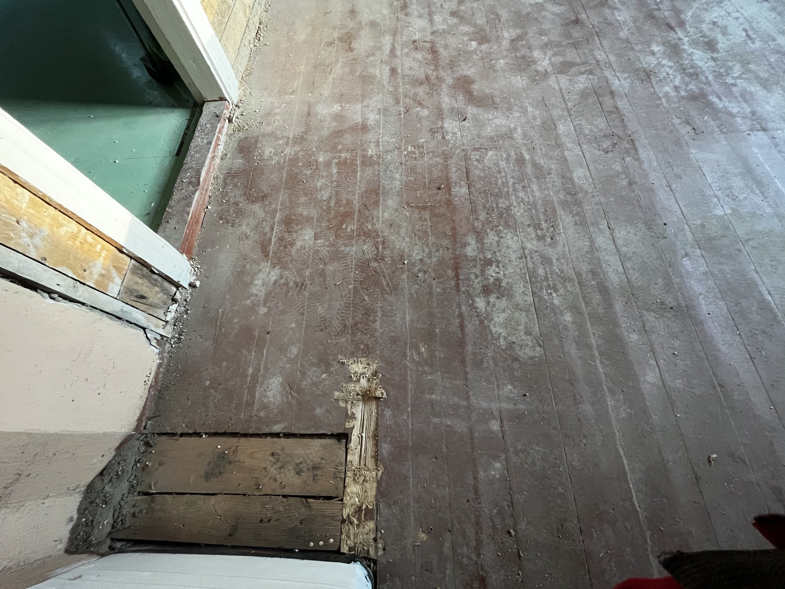 1. põrandalaudise eemaldamine (pildil ühe põranda PLP veel maha katkumata aga see plaanis endal maha katkuda enne tööde teostamist)