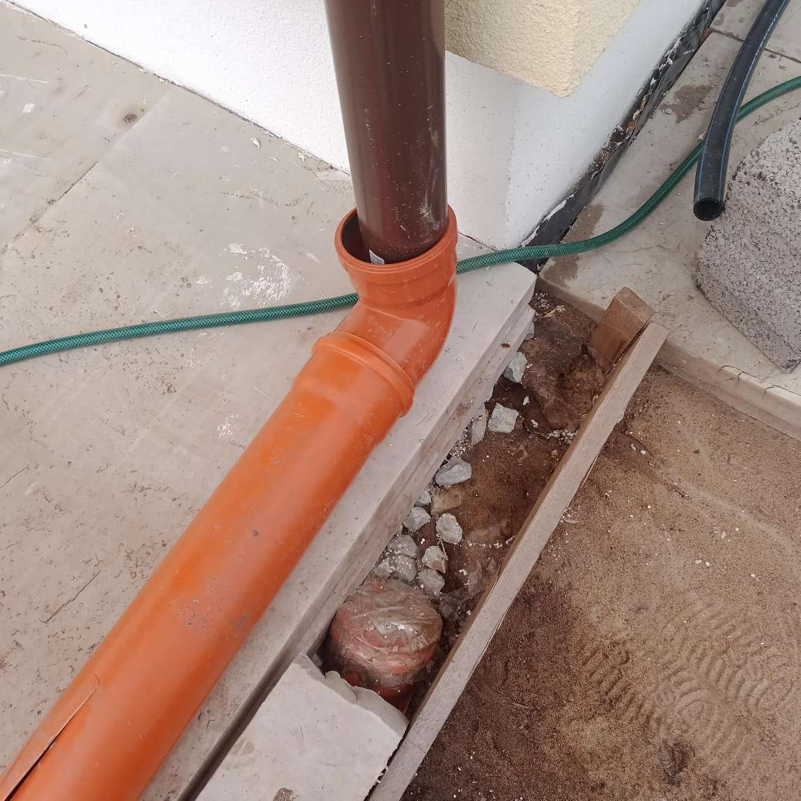 Veel on vaja paigalda rennusüsteem soojusepumba alla ( vaatame foto-vertikaalne toru).