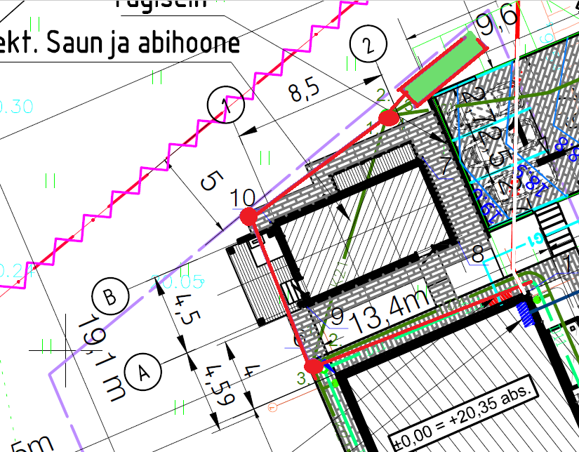 - 1 kaev: pikendada torud (nurgadest) kuni esimene kaev,