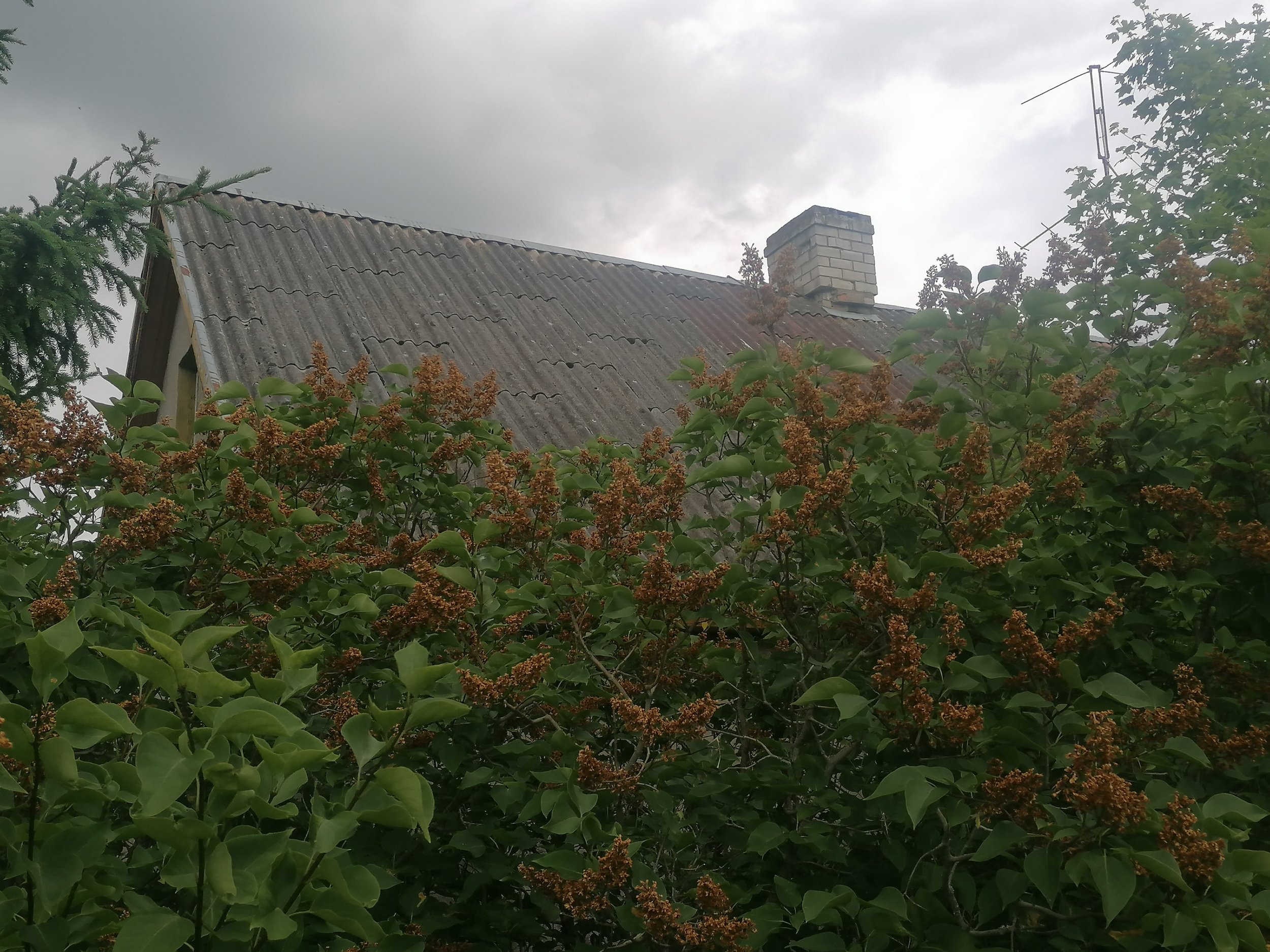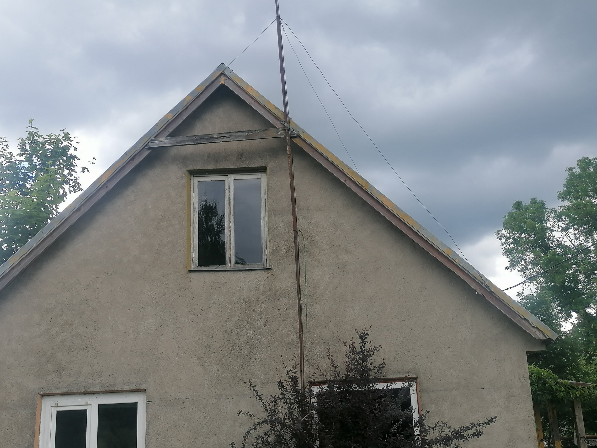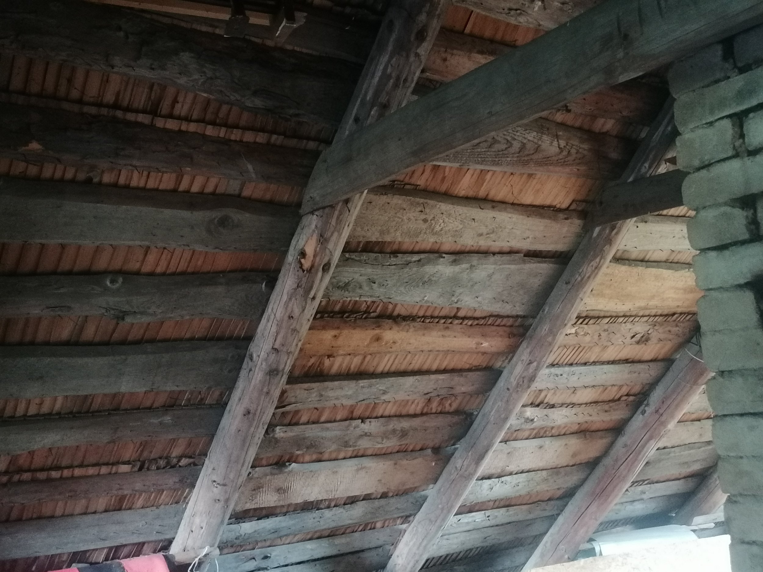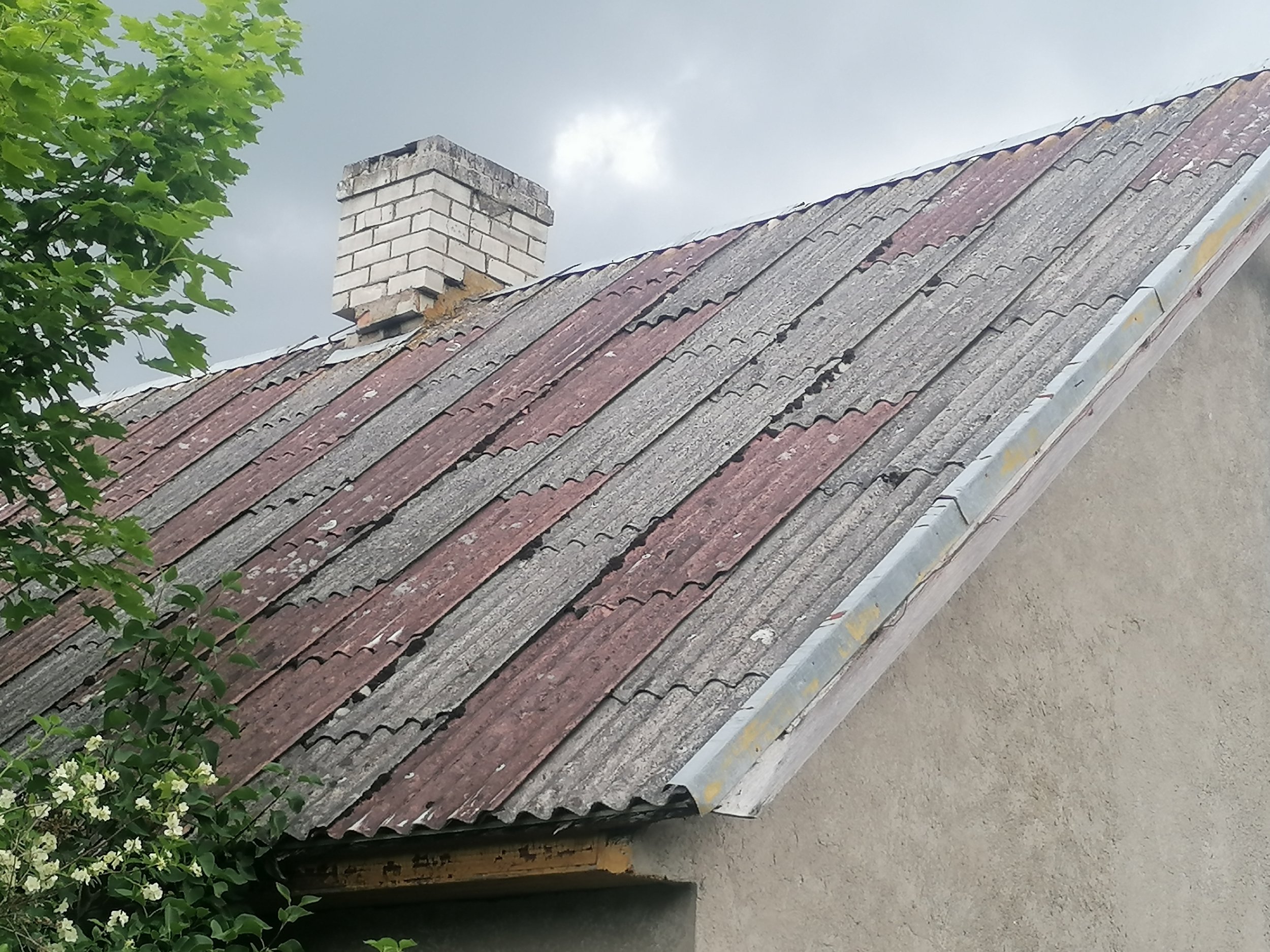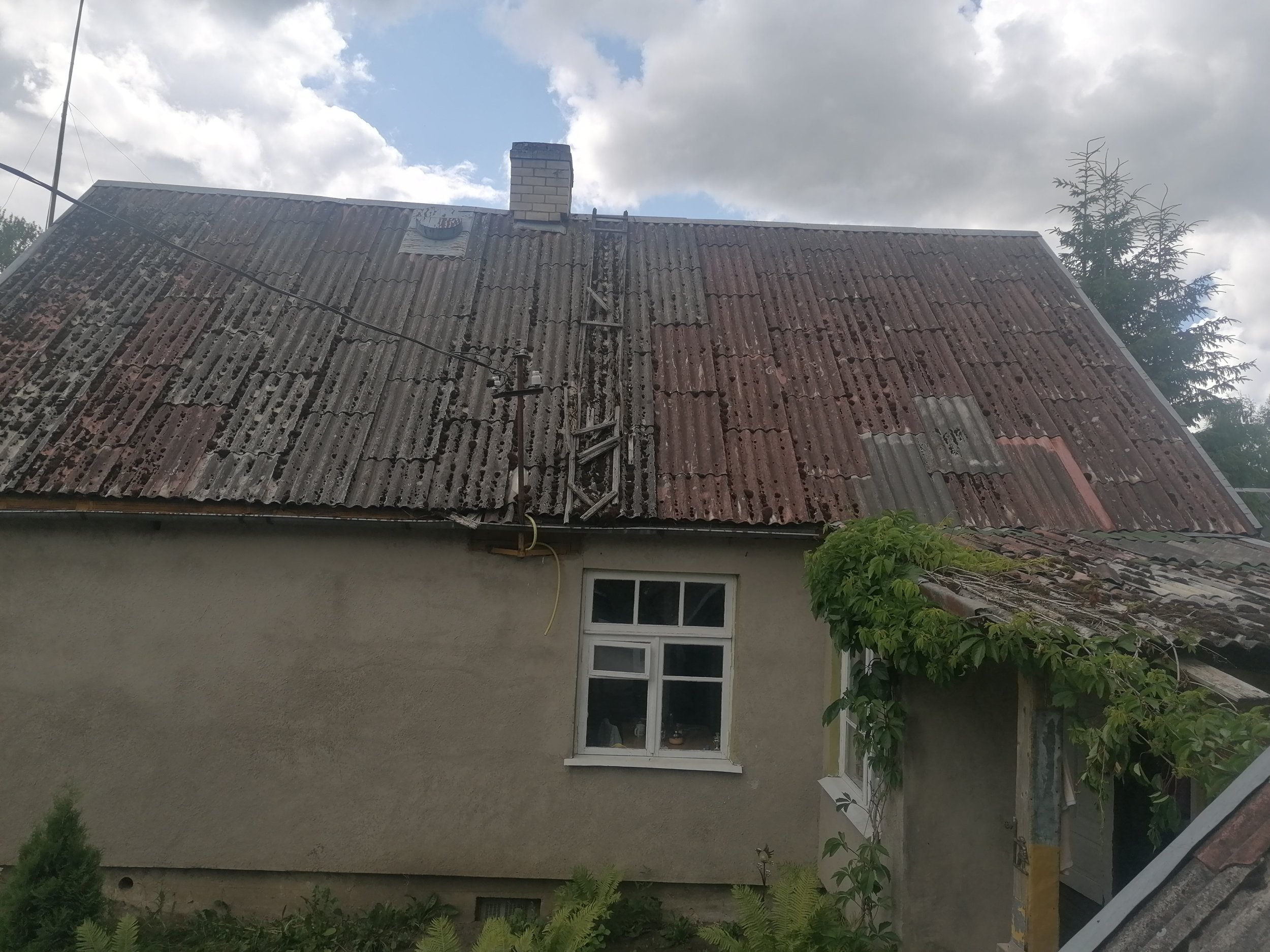 45 kraadise nurgaga katus , kokku ~120m2 eterniidiga kaetud pinda (maja ise 6,5*10m + )Sarikad ja roovitus minu väga ebaprofessionaalsel hinnangul vahetust ei vaja.