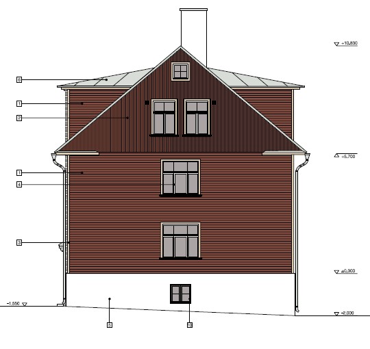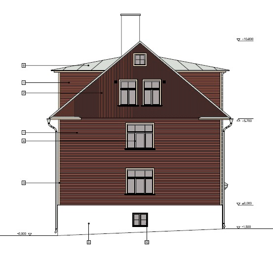 Fassaadilaudise värvimine Villa Akva Tikkurila 367X punakaspruun. Pindala umbes 410 m2.