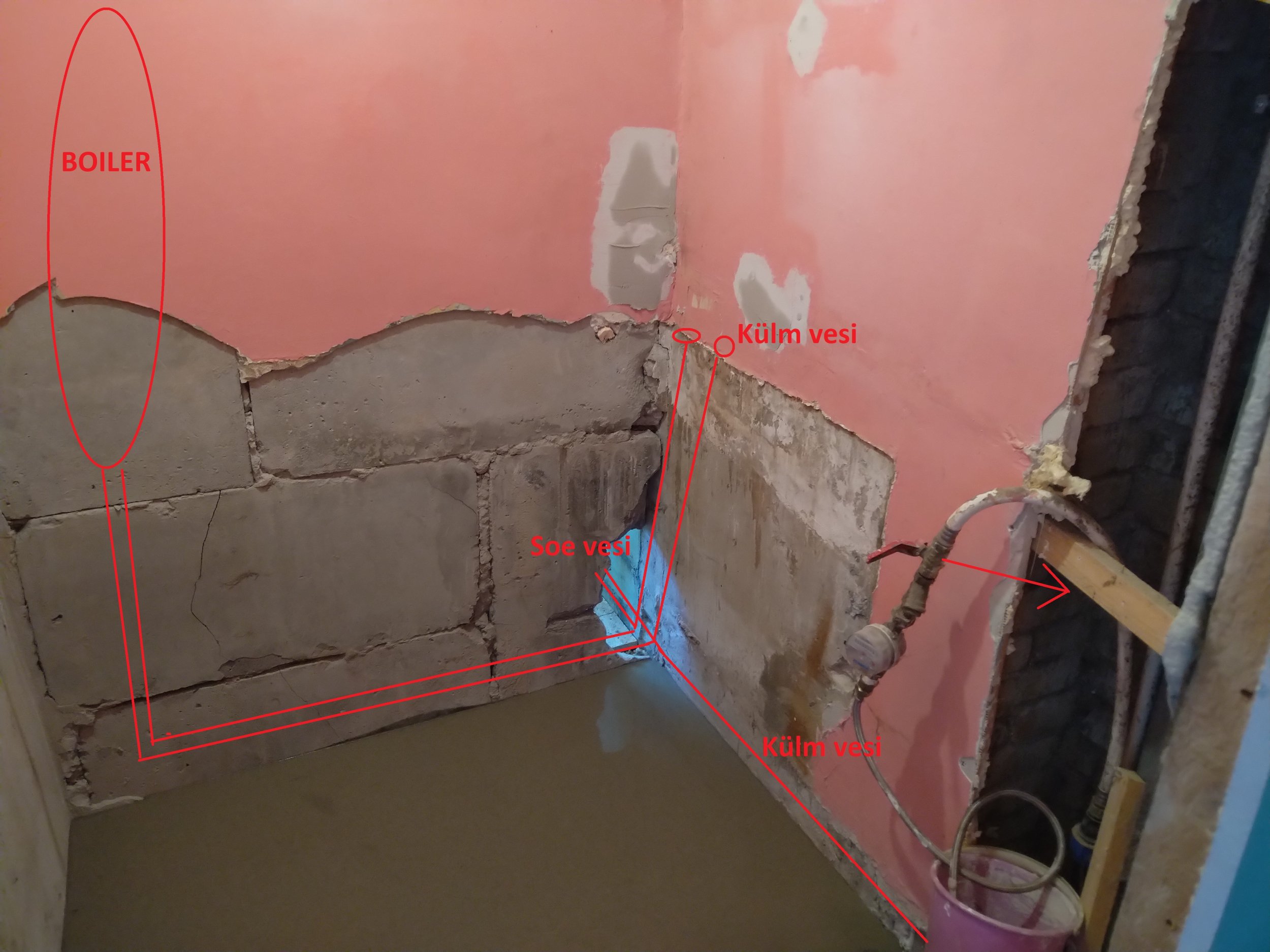 Veemõõdiku asukoha vahetus vannitoas (hetkel seinast väljas, oleks vaja viia seina sisse+torude vedamine (külm/soe seina pealt) vannitoas+ osaliselt kööki (kül+soe).
