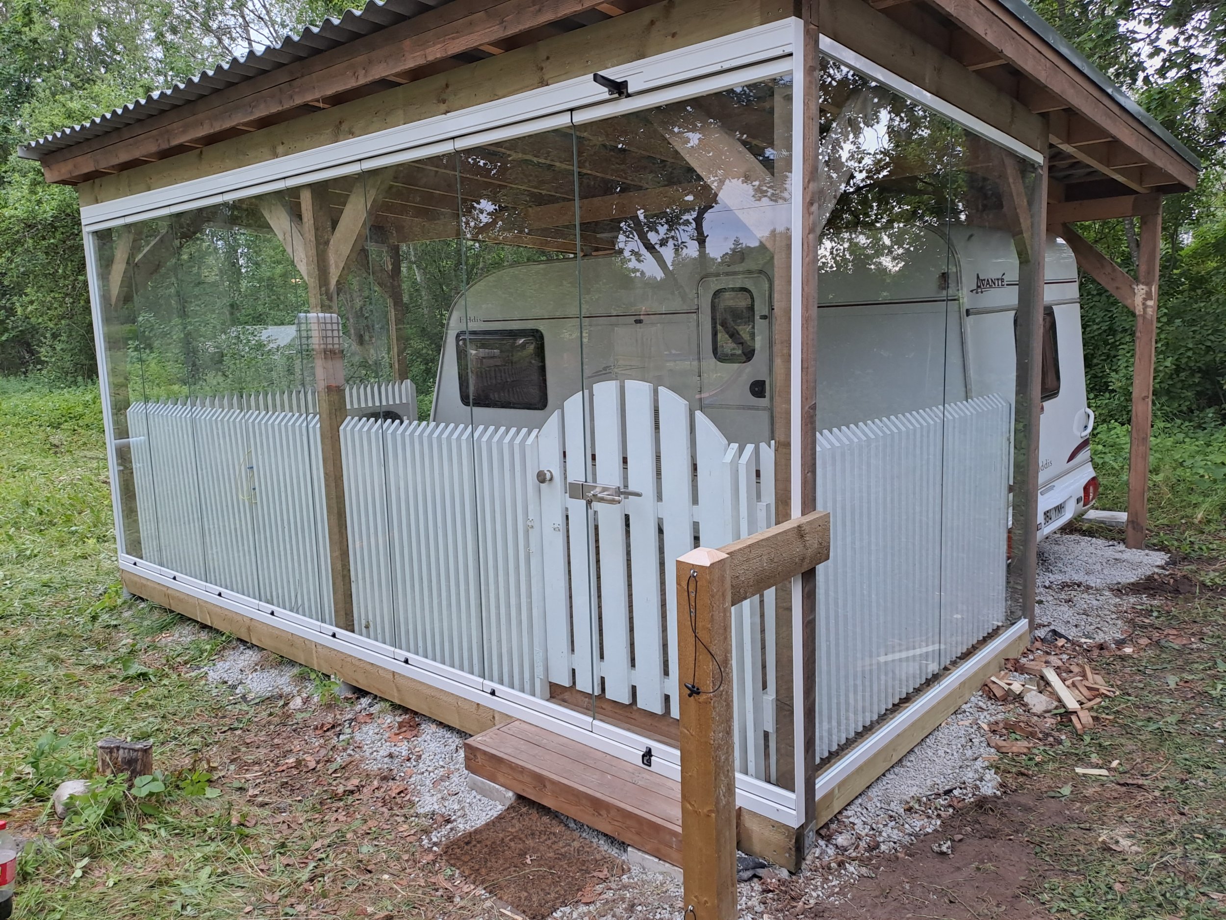 Kiiresti oleks vaja haagissuvila ja terassi vahe ning aia ja haagise vahe ajutiselt kinni ehitada, et kass terassilt välja ei pääseks.