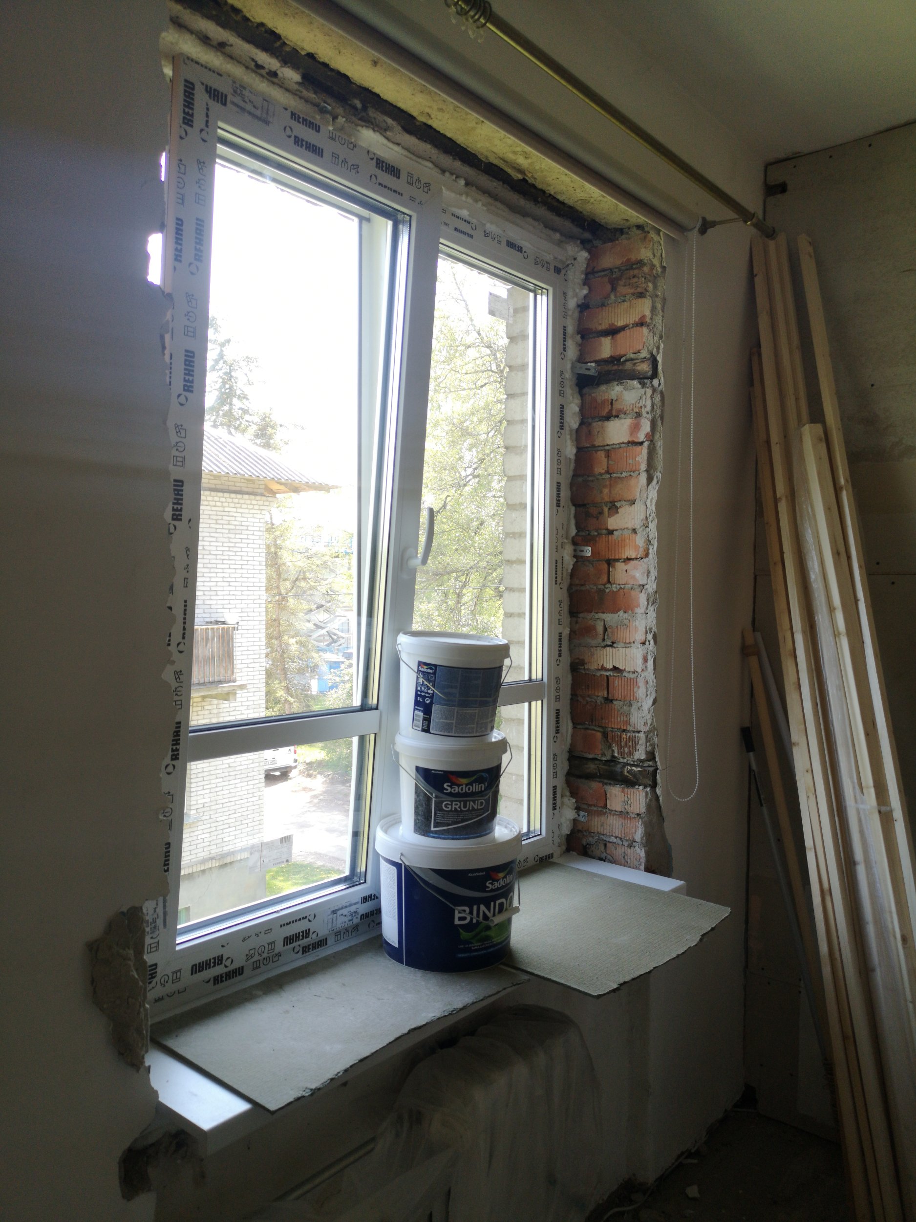 * Lisaks vajalik paigaldada kipsplaat 2-le aknapalele ja seejärel pahteldada ja lihvida. 1 aken asub köögis, teine elutoa poolel.