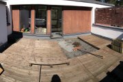 Kahekordne puumaja Tallinnas, profiilplekk katus, vaja on paigaldada lumetõkked (kokku ca 12m), kahe korstna vahele käigutee (ca 8m) + lisaks käiguteest kuni katuseluugini astmed (redel).