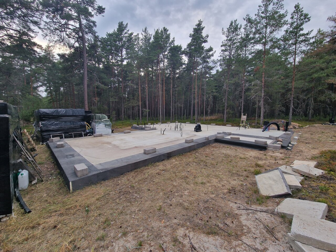 - Plaatvundament koos põrakütte, vee ja kanali torustiku ning elektrikaabeldusega