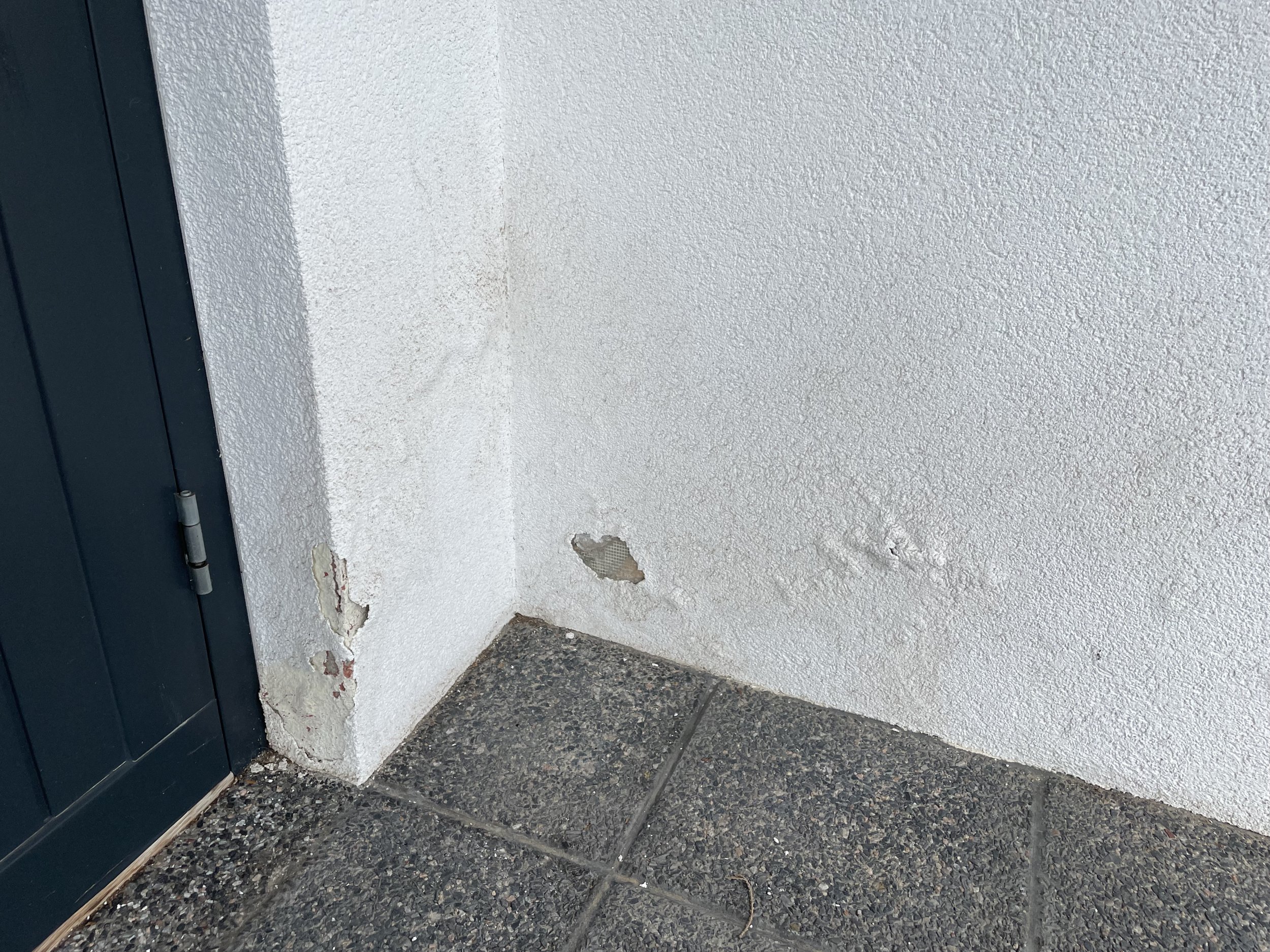 Parandada väljalangenud krohvi kohad ja värvida esifassad ning trepikoja külg - kõik mis fotol näha. Asukoht - Harku vald, Vahi küla