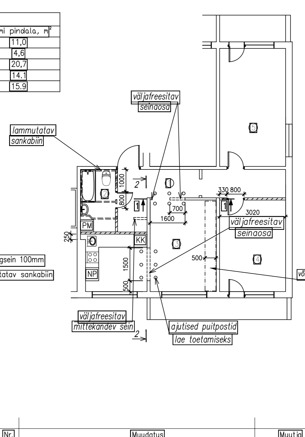 Lammutust vajavad seinad paneelmajas 3-toalises korteris, projekti alusel.