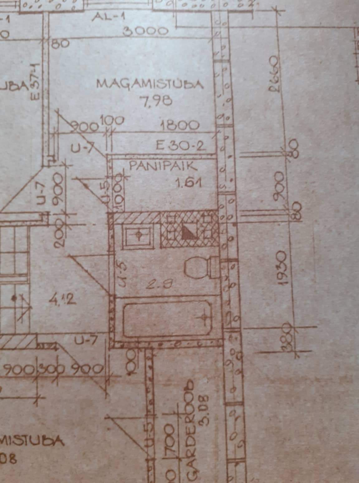 Hetkel on vannituba tühi karp, ruumis on ka korstnajalg