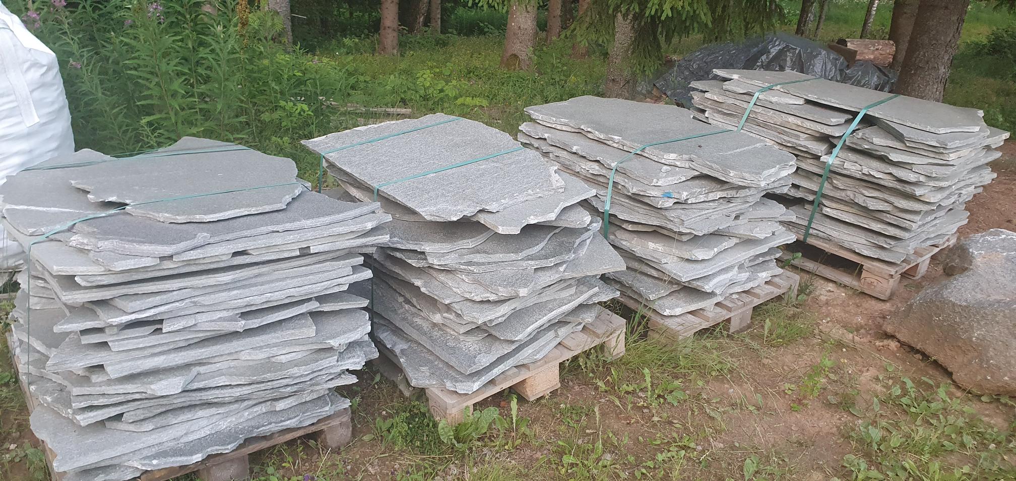 Looduskivi paigaldamine k.a. pinna ettevalmistus, kokku 90m2 (shifer plaadid ehk kvartsiit 60m2 + täringkivid 30m2)