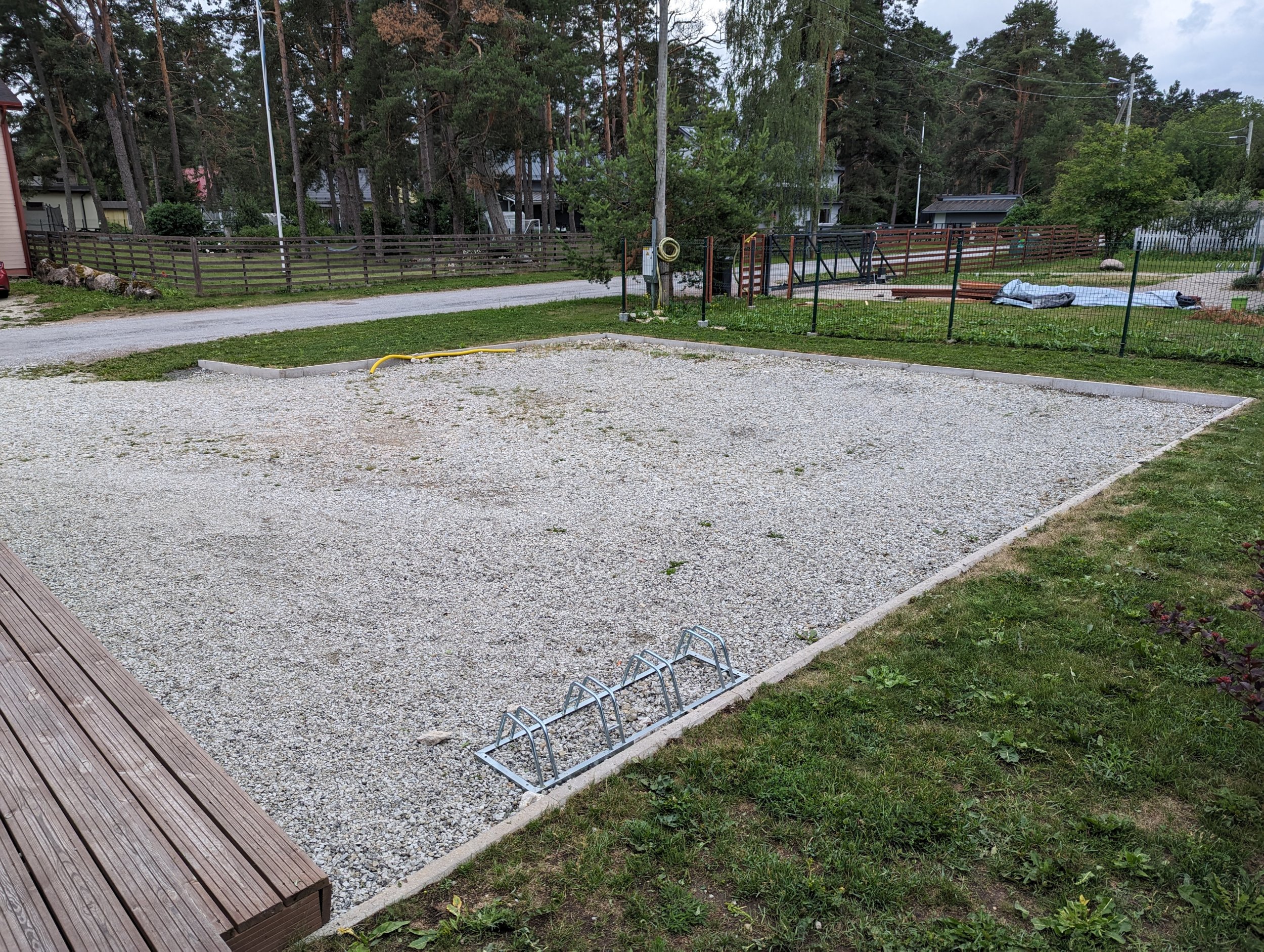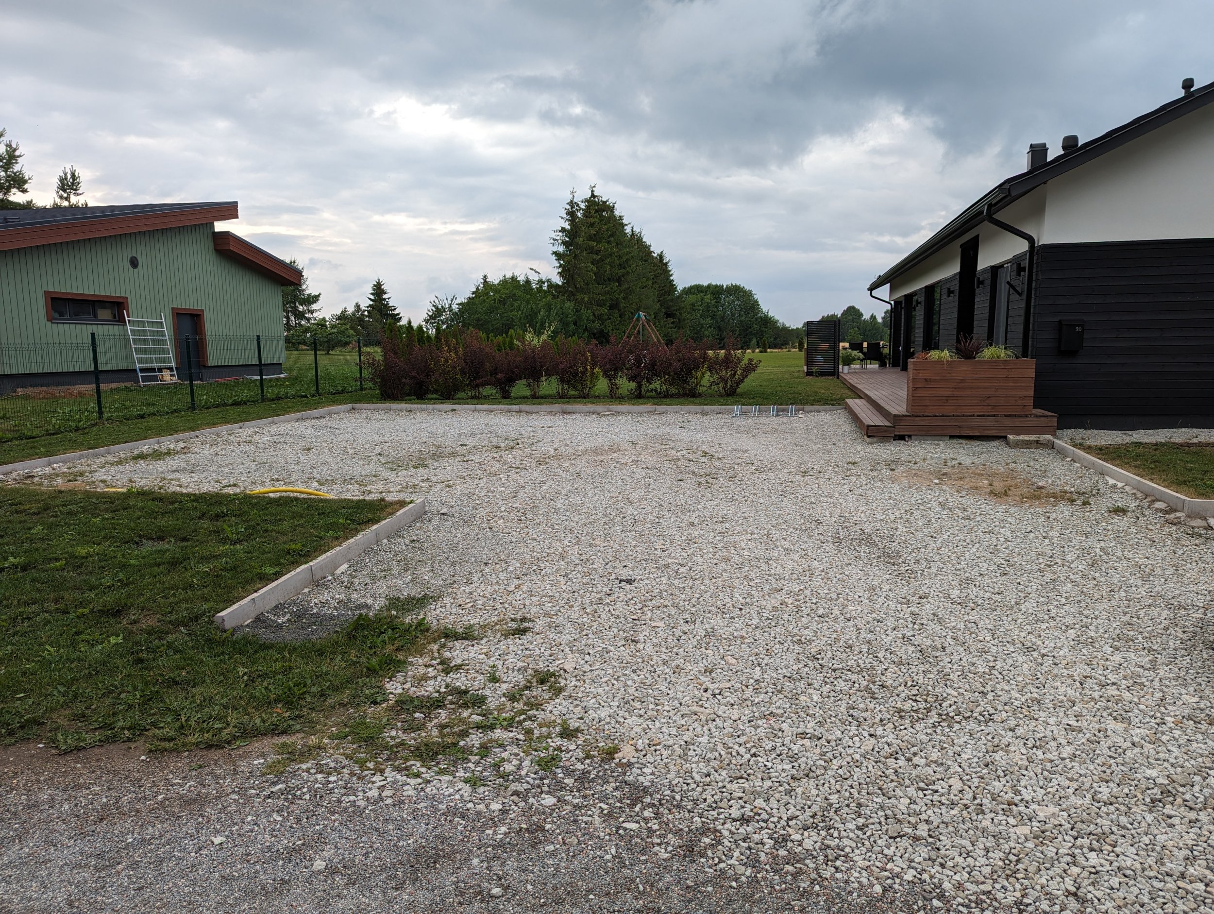 Tihendame killustiku platsi,lisame sõlmed ja paigaldame kivi. Samuti mõtleme välja lahenduse kuidas lõpetada pealesõit,kas paigaldame äärde äärekivi,asfaldi vms. Hinnale lisanduvad sõelmed ca 400 EUR Vuugiliiv,ja pealesõidu materjal(äärekivi või asfalt või mõni muu lahendus) Heade soovidega! |