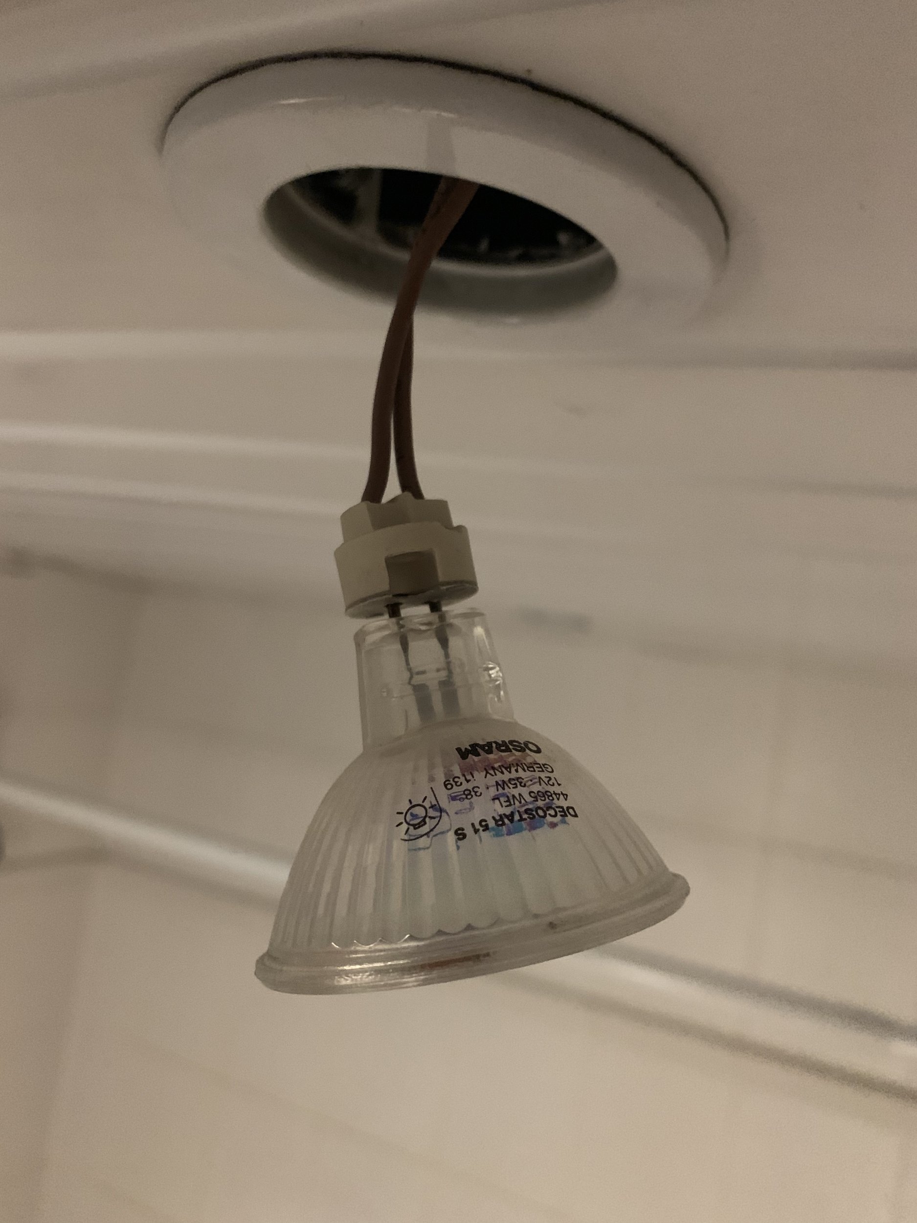 Vannitoa ripplaes on halogeenlambid. Vaja oleks vahetada need LED lampide vastu. Ehk on vaja vahetada ka trahvod. Kokku kolm lampi.