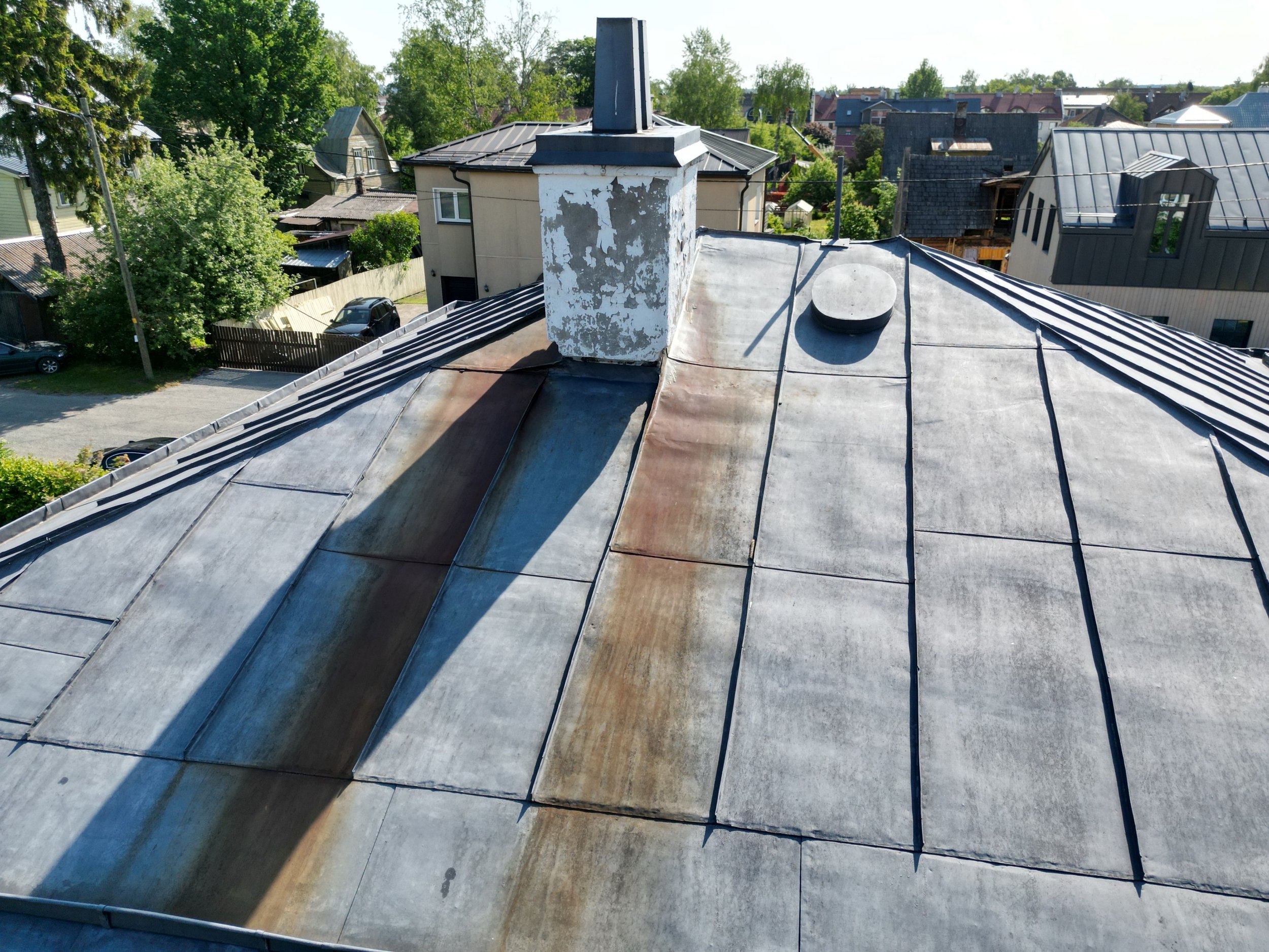 Tartus, Karlova linnaosas oleva maja plekkkatuse puhastamine ja värvimine (katuse pinda 125 m2),