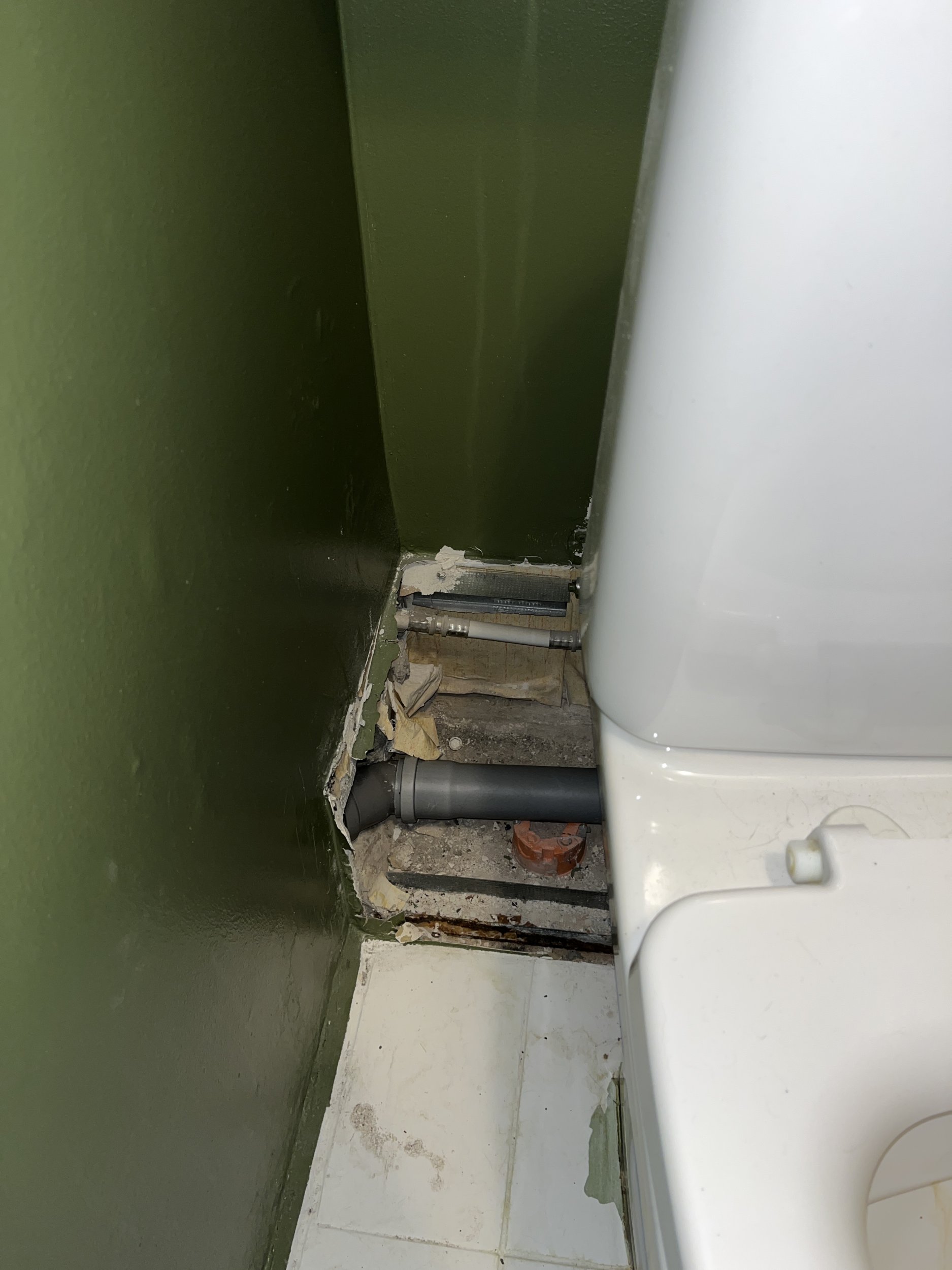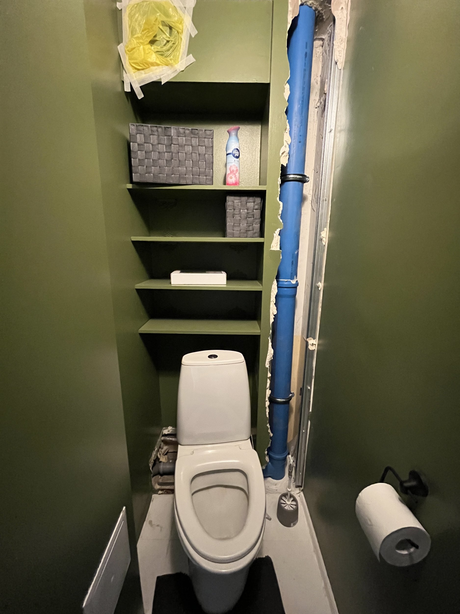 Olemasoleva riiuli lõhkumine, seinapealse WC-poti paigaldamine ja seina viimistlemine.
