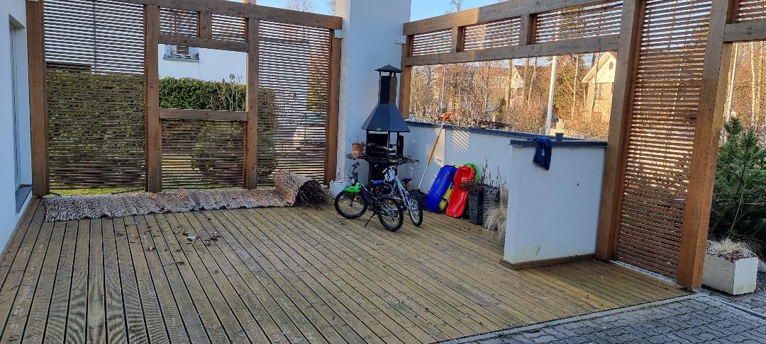 1) * Terrasside puhastus ja hooldus Rensa Terrace pesuvahendiga (puitterrasside puhastamiseks enne puiduõliga töötlemist). * Eemaldab mustuse, hallituse, sambliku ja muud saasteained, mis takistavad puiduõli imendumist. * Pesuaine kantakse puhastatavale pinnale pintsli või madalsurvepihustiga * Antiseptik kantakse niiskele pinnale, seejärel pestakse kõrgsurvepesuriga maha. *Õli kantakse puhtale pinnale pintsli või madalsurvepihustiga (põrandalaudade vahele pintsliga) 2) *Tänavakivi puhastamine ja lasuurimine Tänavakivide LASUUR KIVIKUULLOTE Tikkurila+ toon. 3) * Piirdeaia värvimine puiduvärviga Veranda * Õlitoon kliendi soovil. * Prügi väljaviimine ja töökoha koristamine. * Garantii 5 aastat * Makse arvel. |