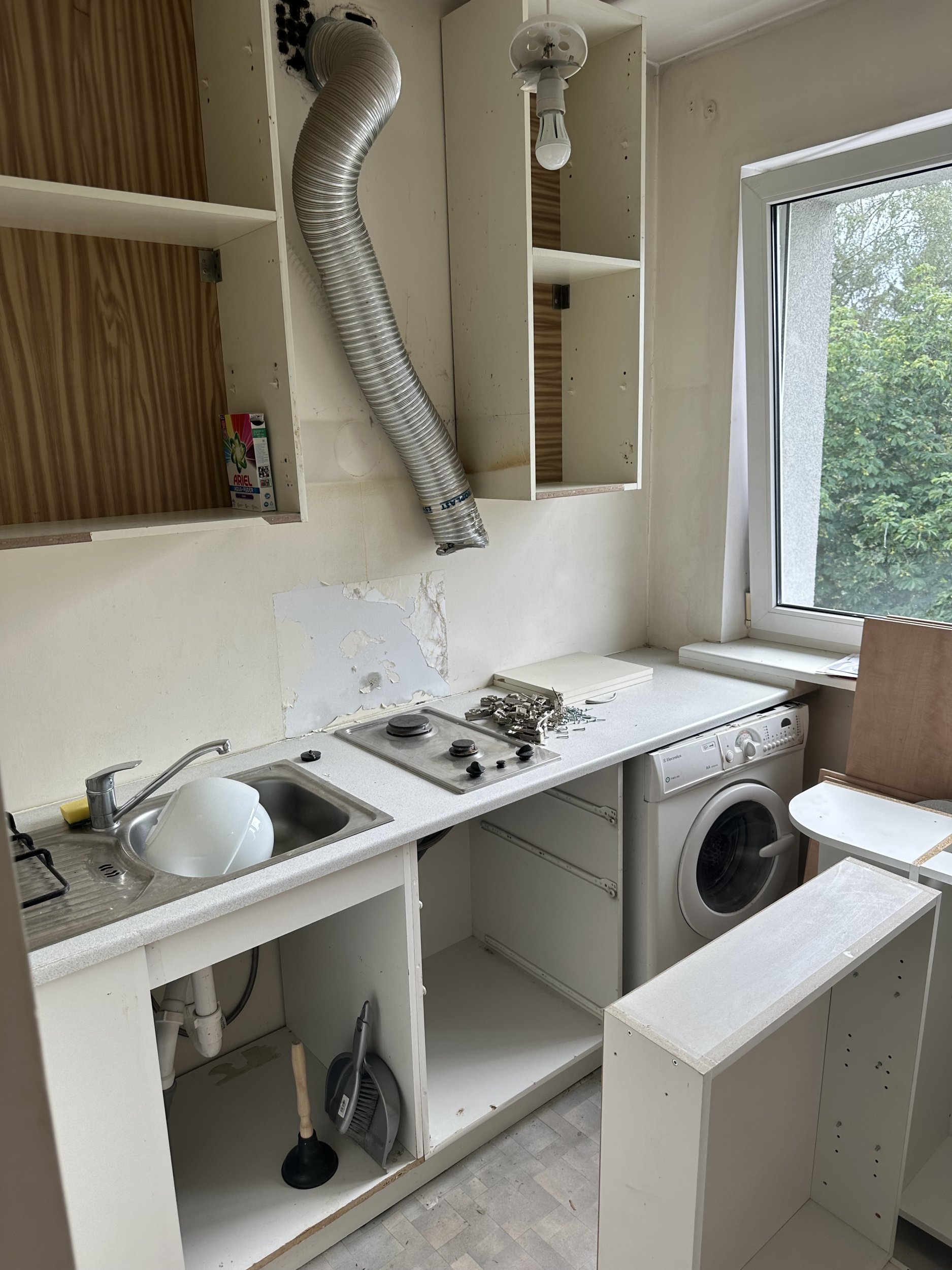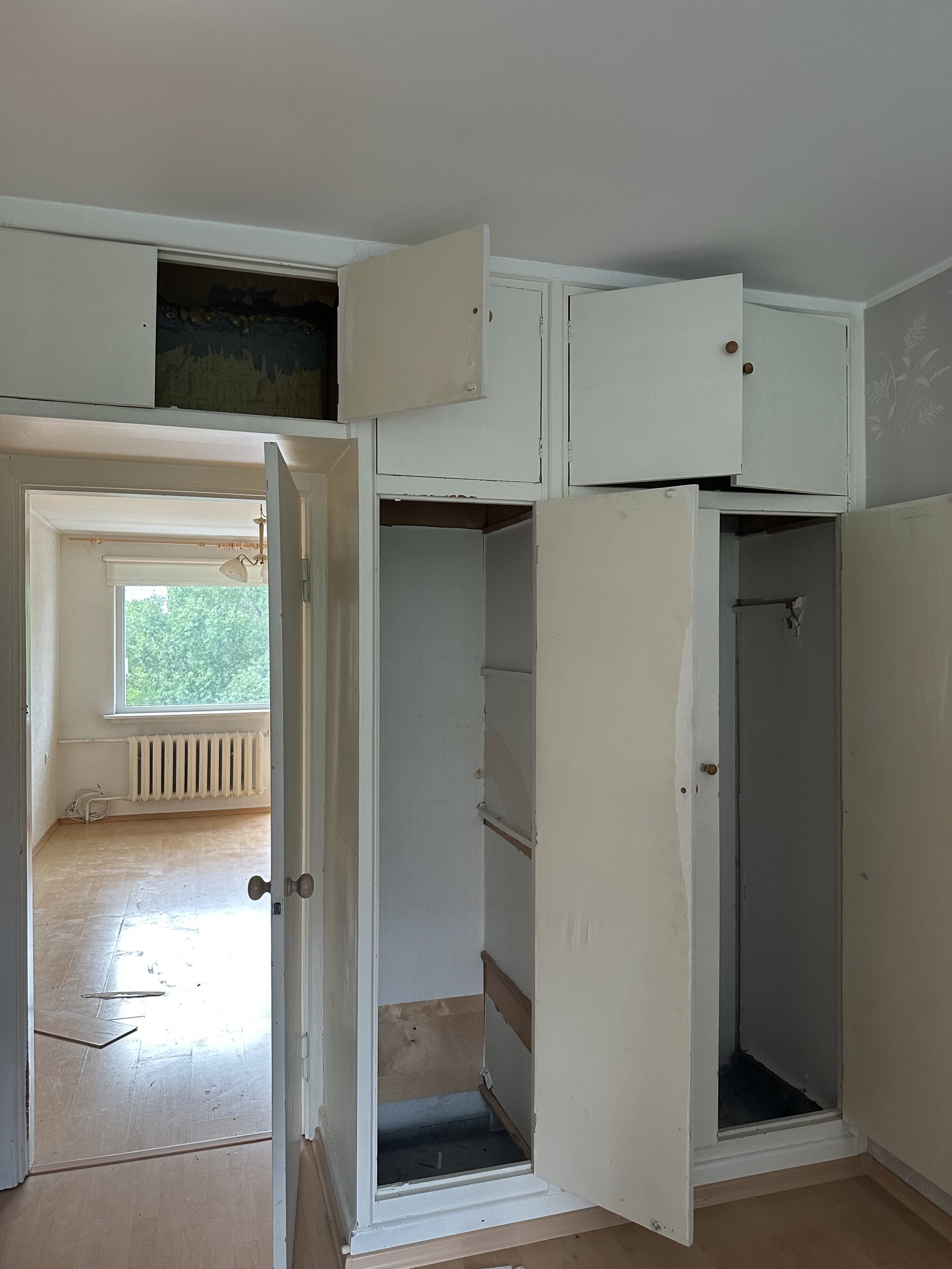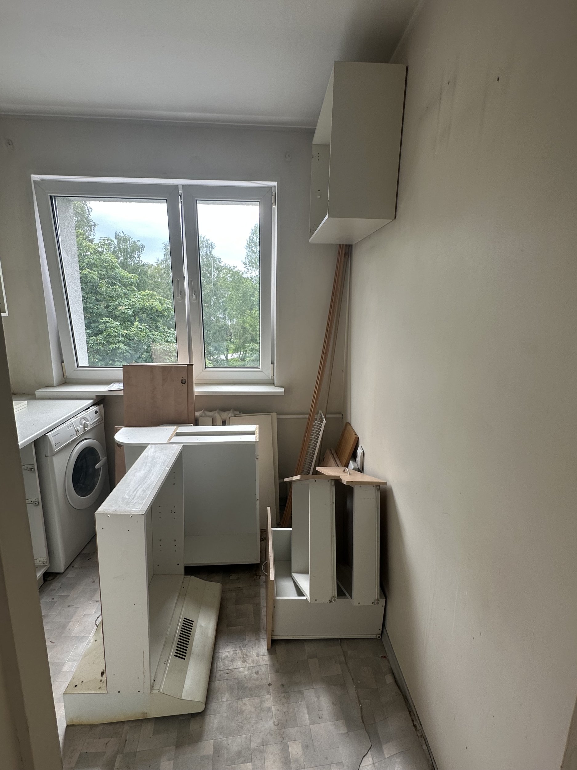 Vaja oleks välja lammutada vanad nõukaaegsed sisseehitatud seinakapid (magamistoas ja esikus). Köögis maha võtta vana köögimööbel ja põrandalt vana linoleum põrandakate. Elu- ja magamistoa ning köögi siseuksed ja piidad eemaldada. Kogu tekkinud praht utiliseerida.