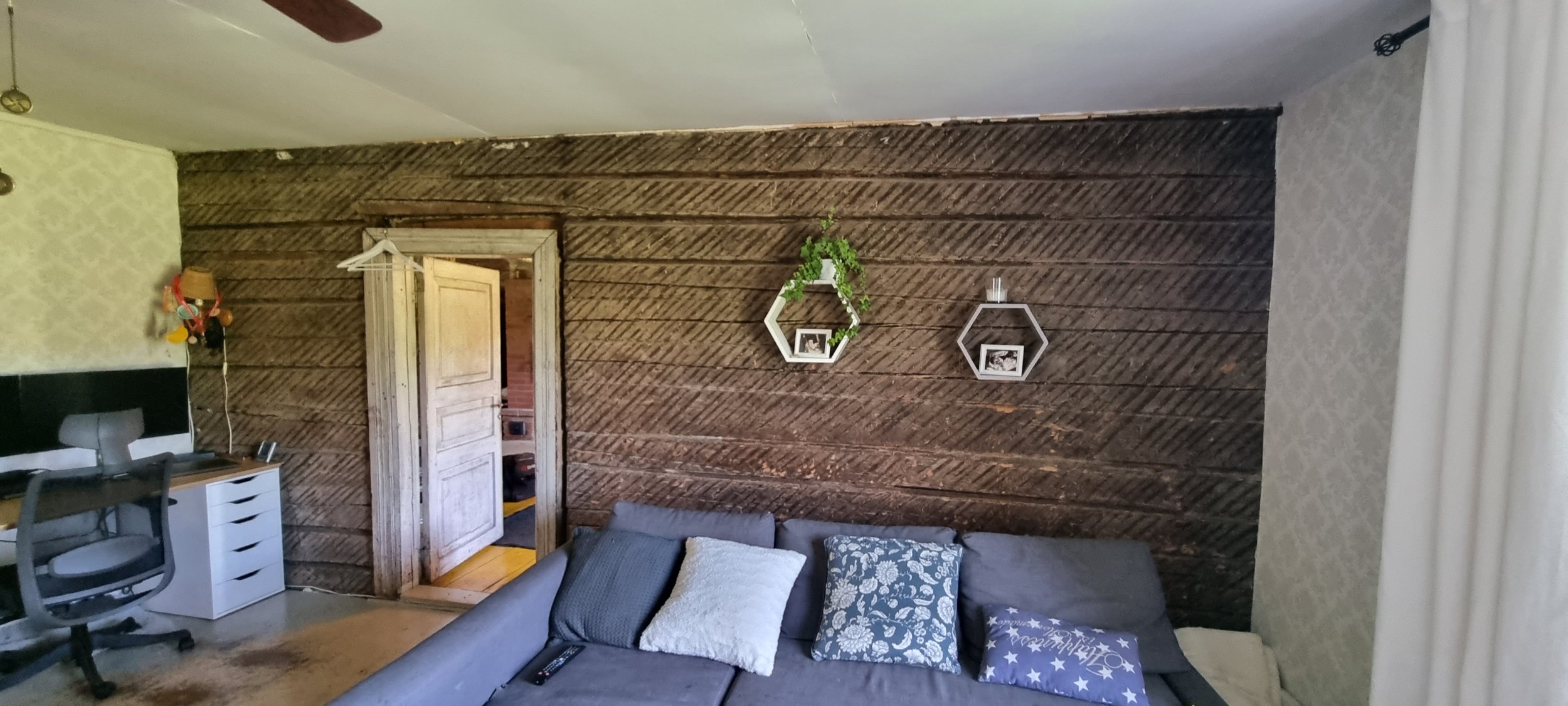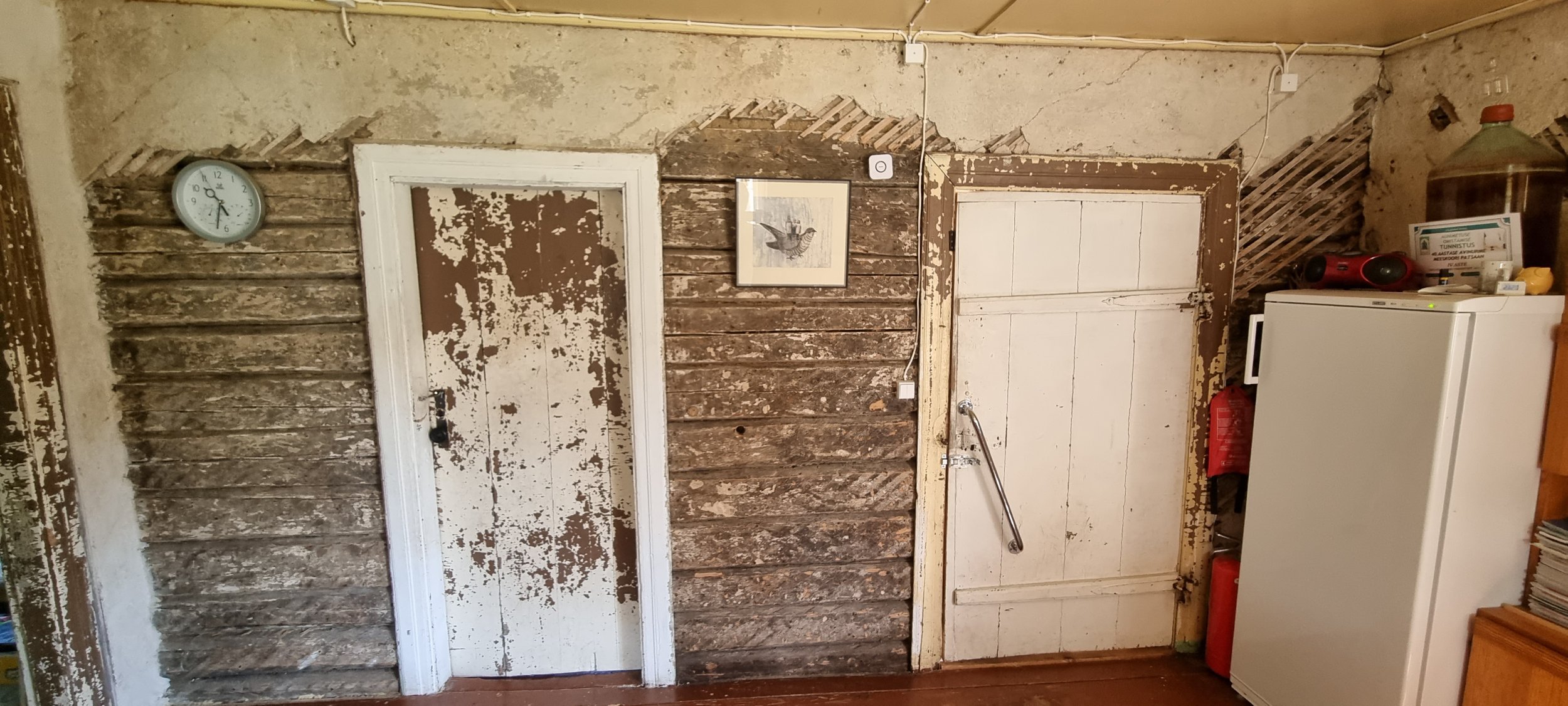 Seinal olev krohv/sõrestik/juhtmed eemaldatakse tellija poolt enne tööde algust. Samuti eemaldatakse pildil olev mööbel.