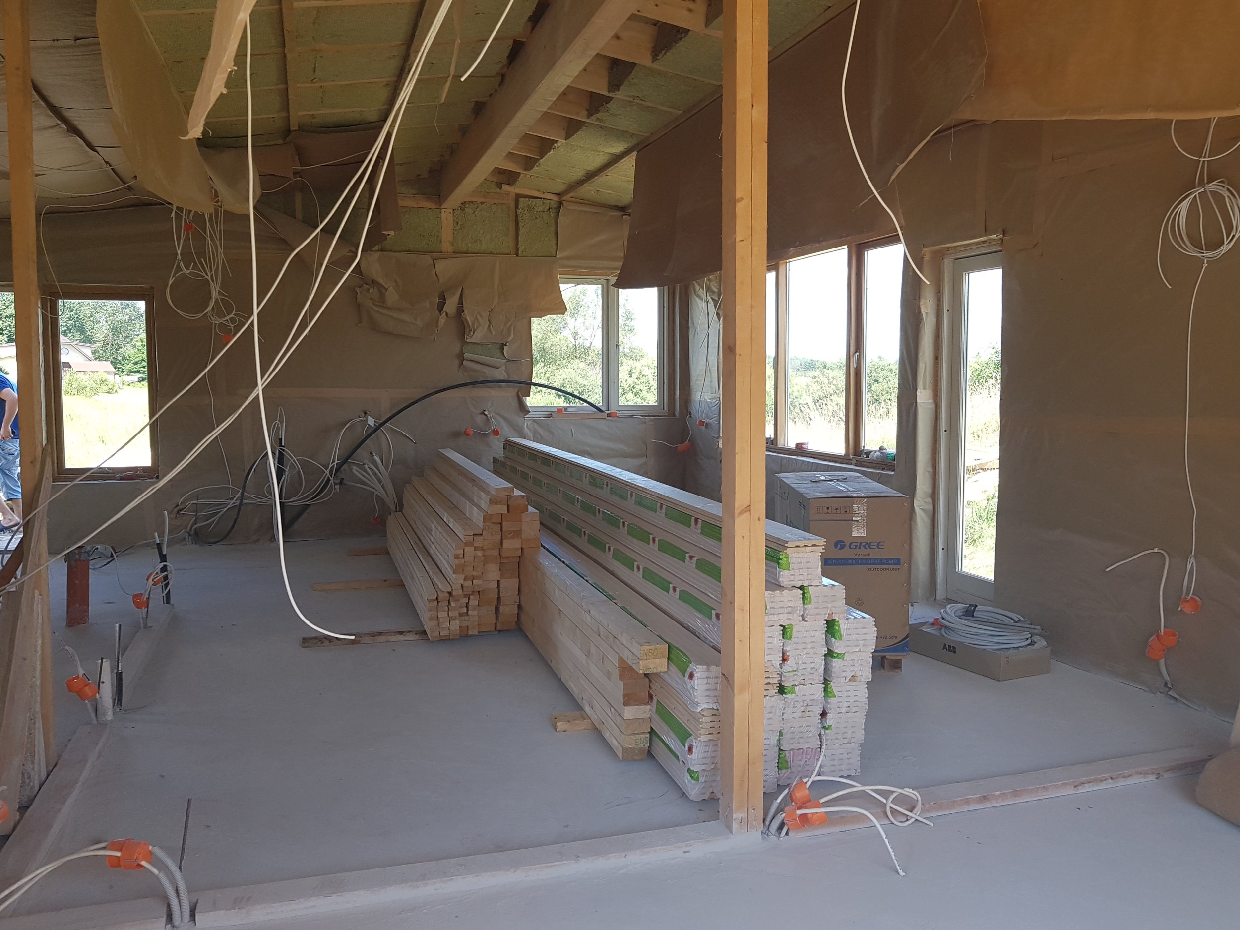 Vaja teha lisavalu põrandatele, kuna eelmine valu läks nihu ja põrand on liiga ebatasane. Soov saada väga sile ja ilus betoonpõrand, mis alguses jääbki nii (vaja millegagi üle lakkida-katta, et jääks siidine kena mulje) ning hiljem kunagi tuleb ehk parkett peale. Lisaks vaja siseseinte karkass ehitada. Siseseinte karkassi puit on olemas. Betoonivalu materjalid on ehitaja poolt.