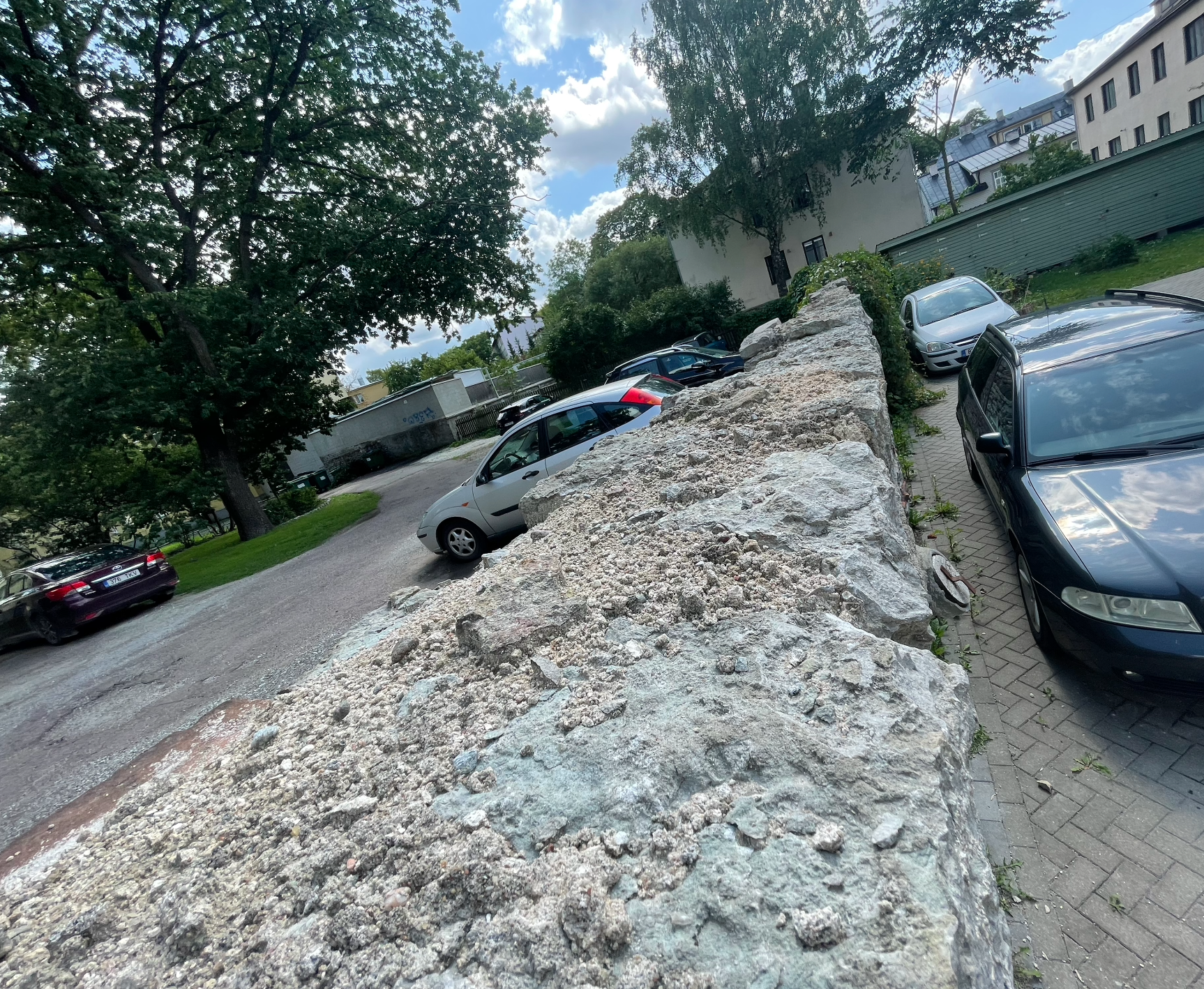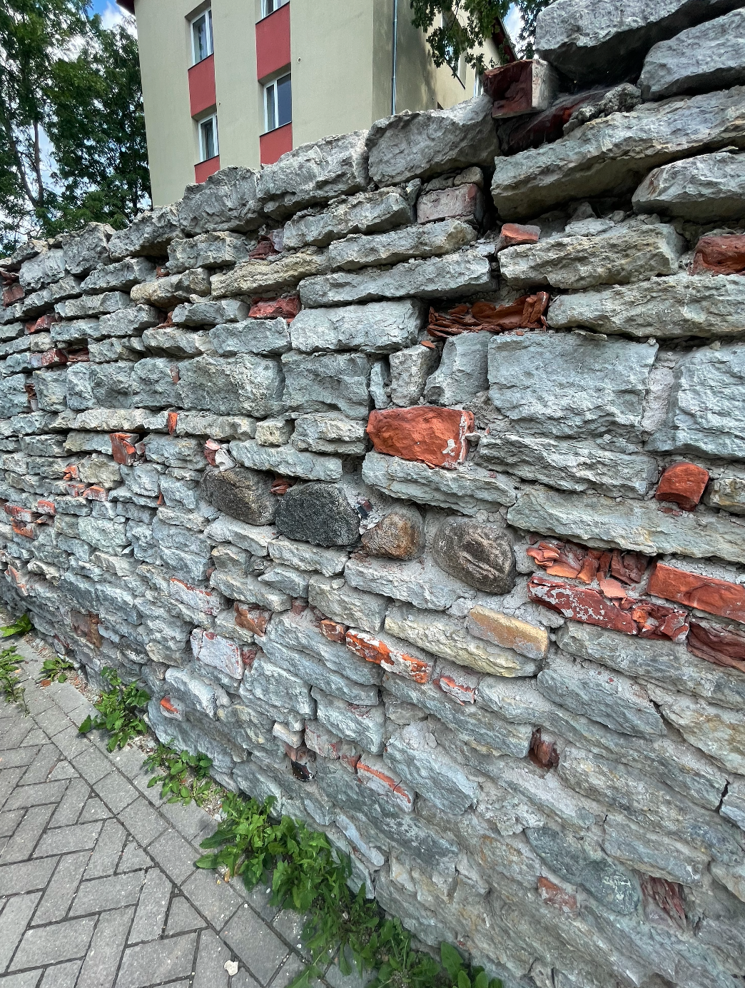 Vana paekivimüüri osaline taastamine ja krohvimine mõlemalt poolt.