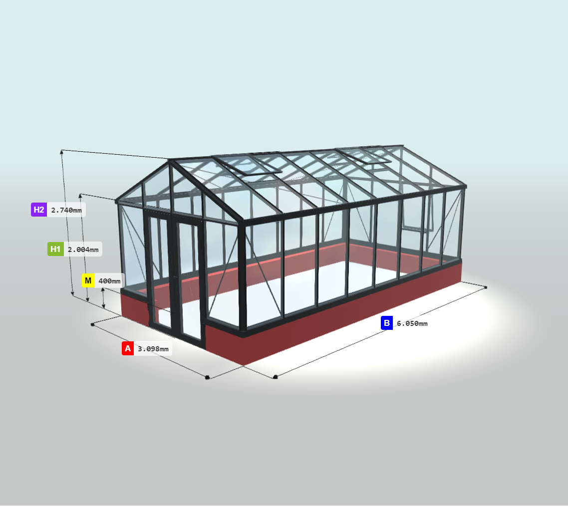 • Kasvuhoone välismõõtmed :L 310cm x P 605cm