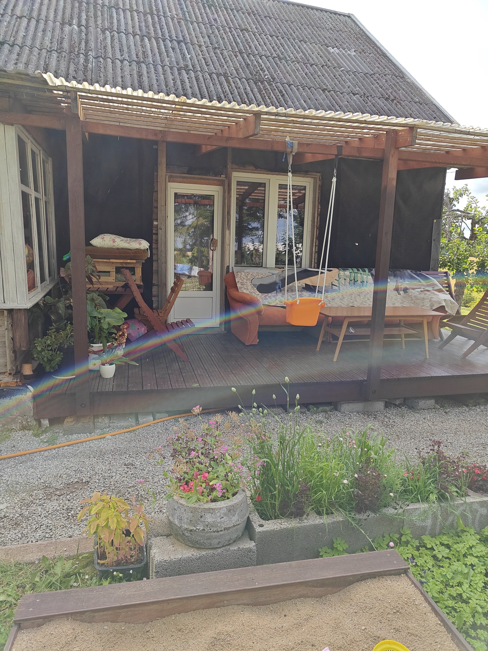 Maja osa pikkus ca 15m laius 9m kõrgus vundamendiga ~4m igas küljes 2 akent, ühes küljes veranda ja verandale minev uks.
