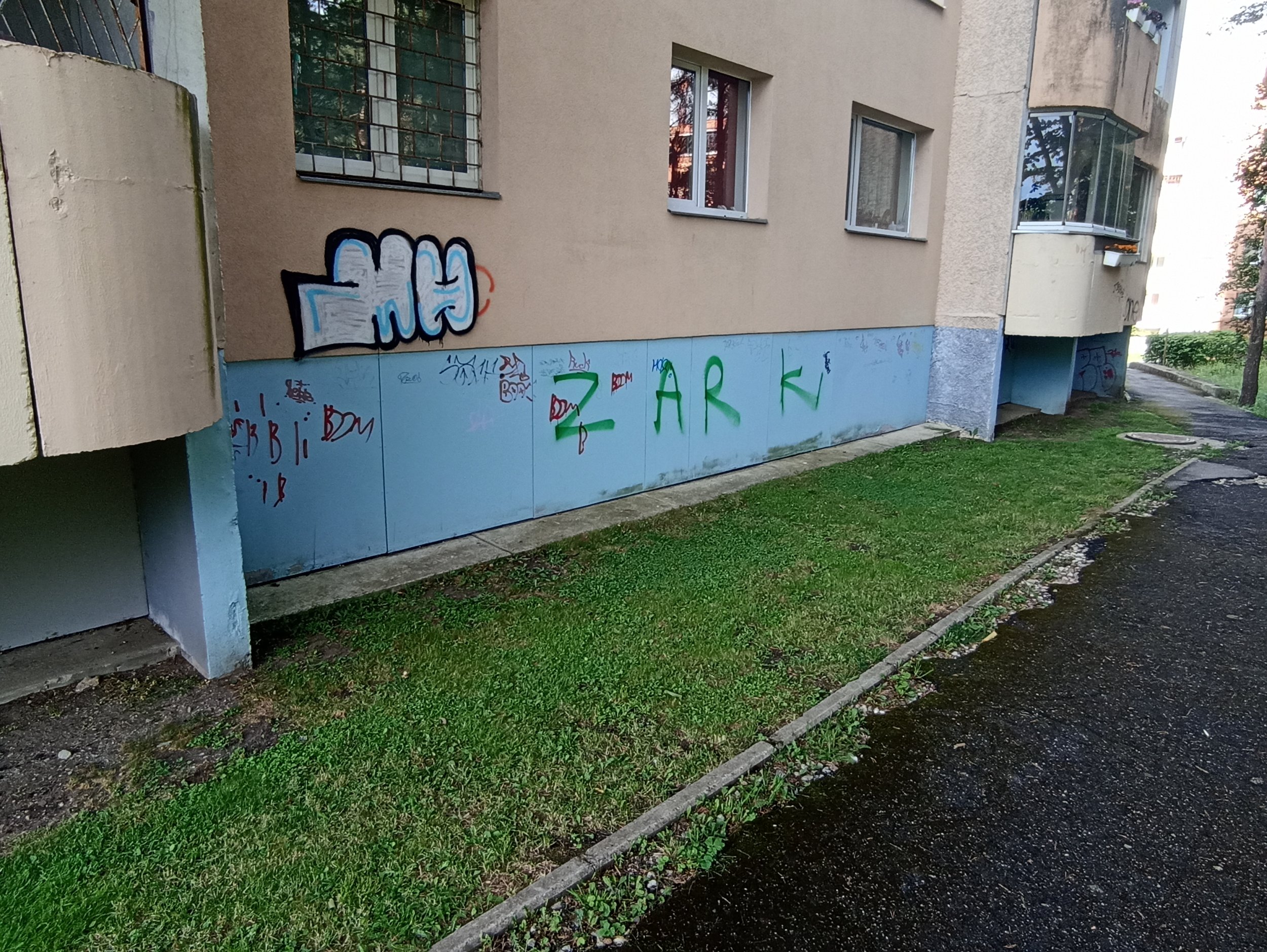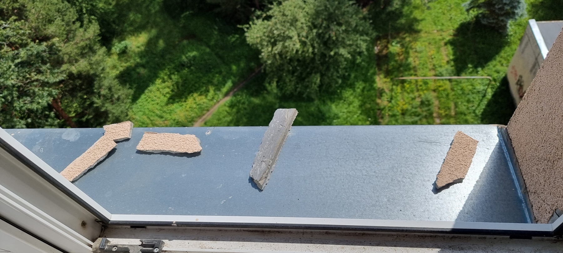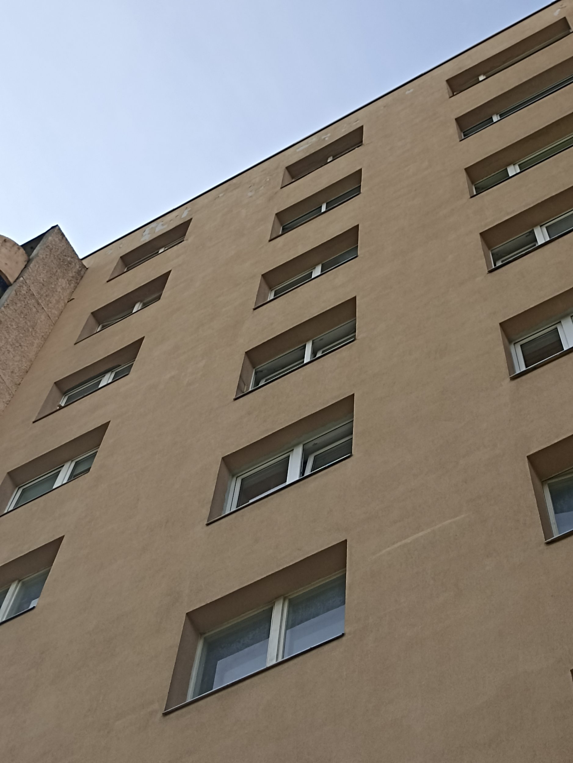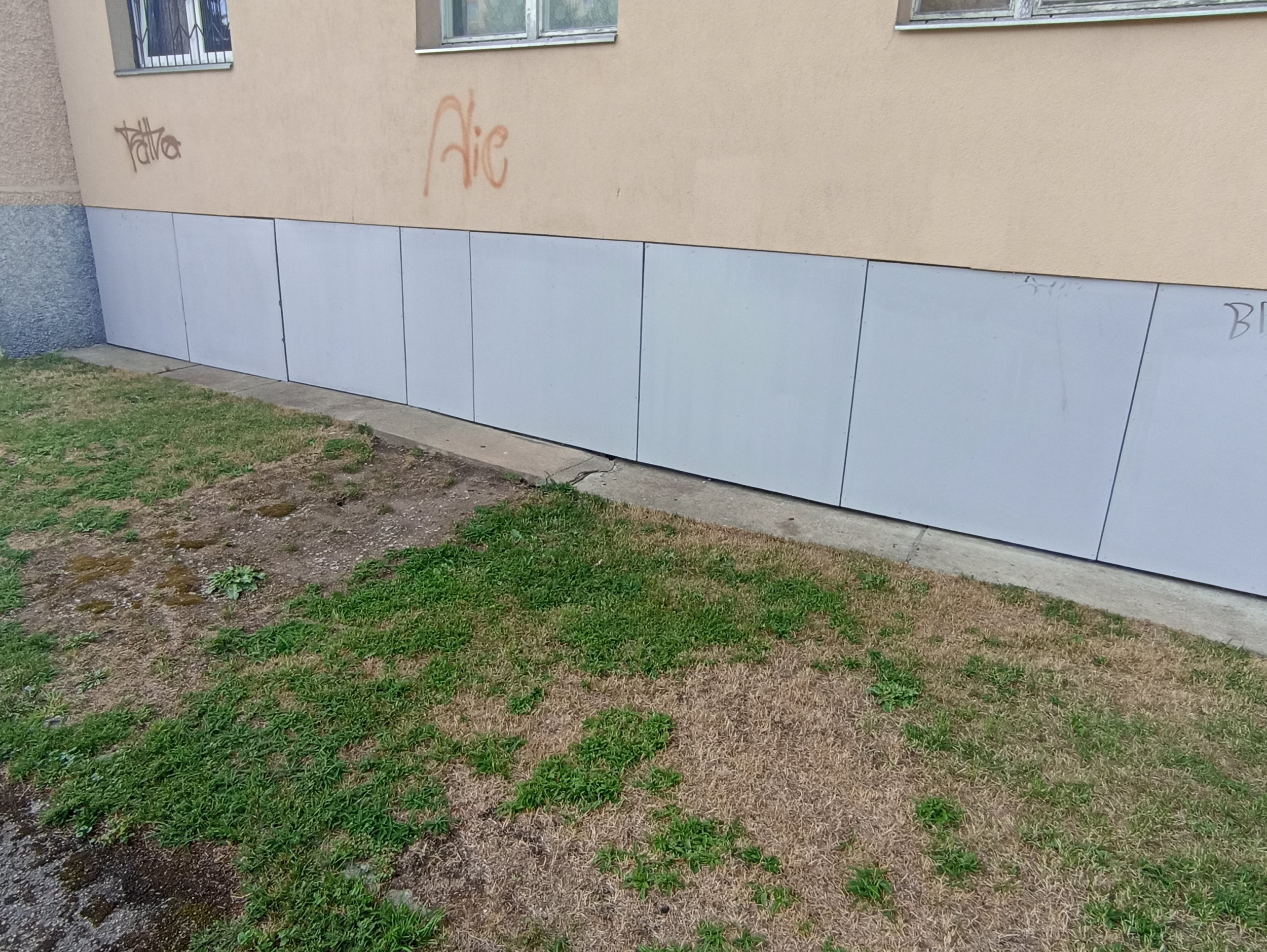 Fassaadi krohv on murenenud ja tükid väljas, vaja üle krohvida ja värvida. Samuti vaja üle värvida või eemaldada soditud seinad.