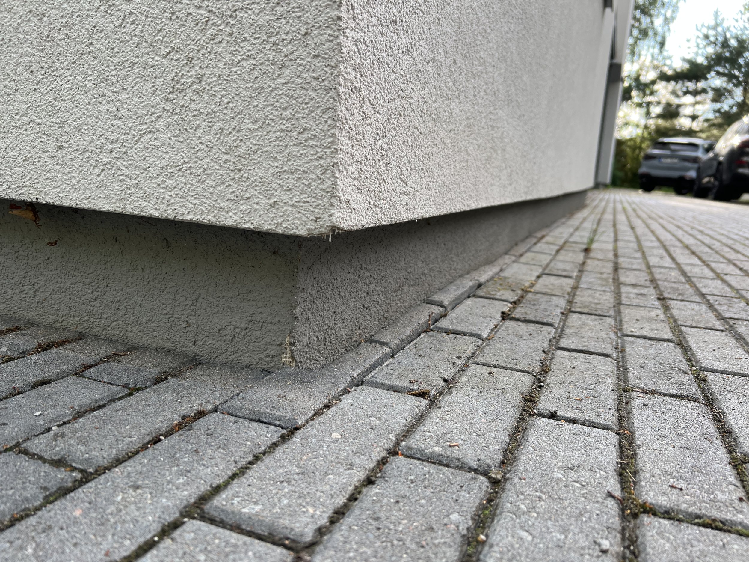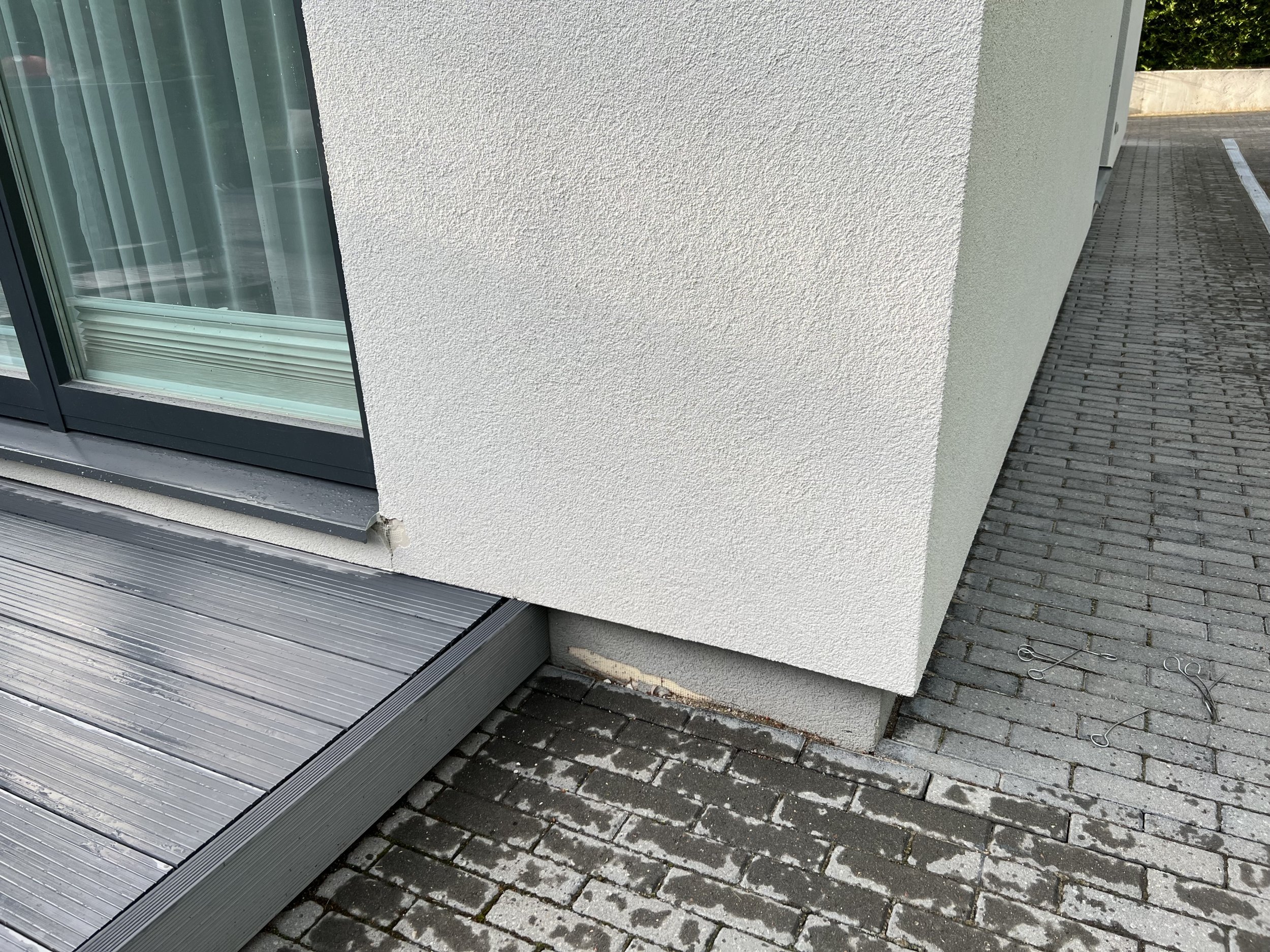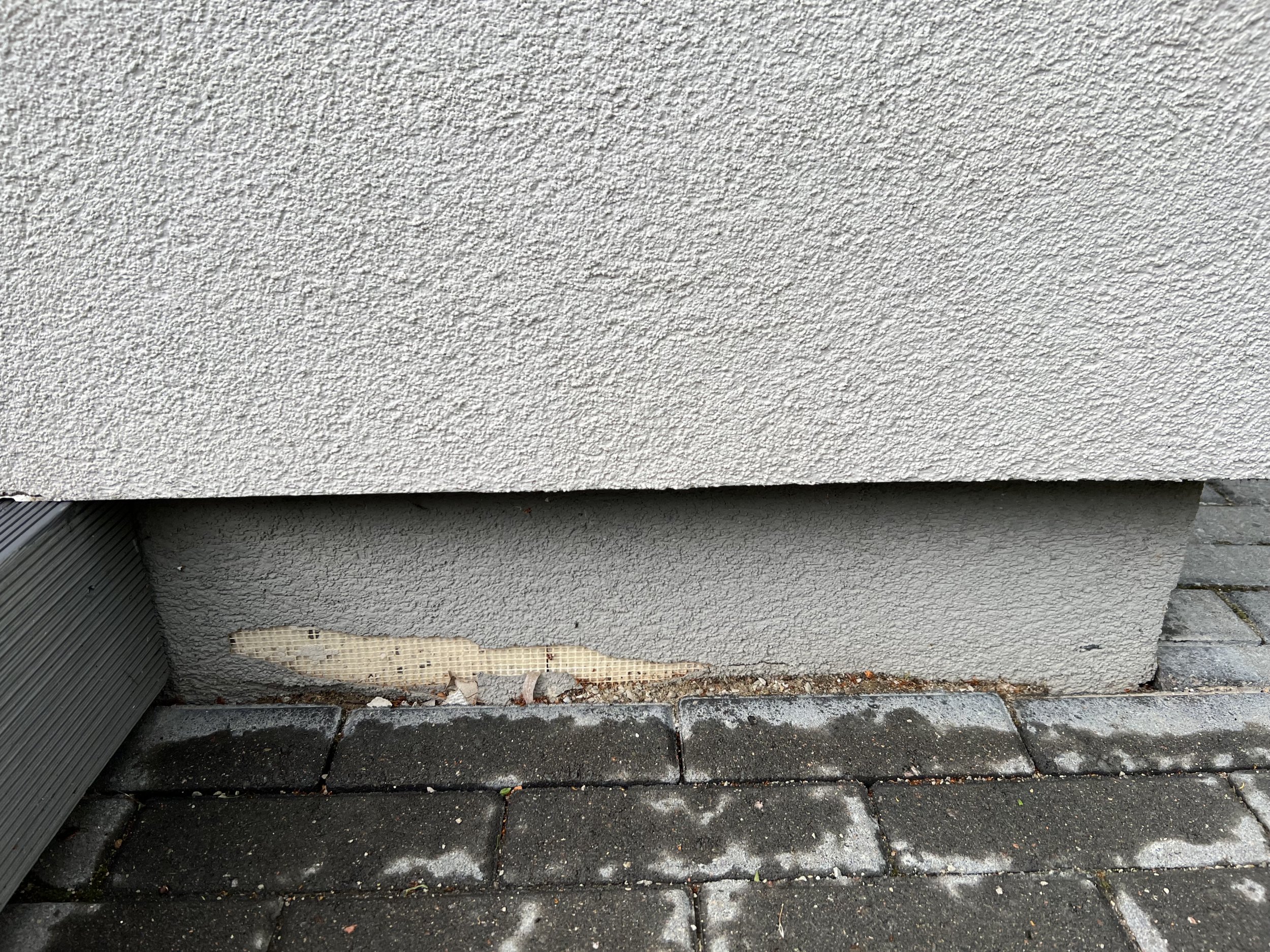 Välisfassaad on majavajumisest kahjustunud ning koorub dravi kiht. Kahjustatud kohtadest tuleks eemaldada vana krohv ning uuesti krohvida, vajadusel armeeruda. Kokku 5 pragu + 2 kahjustuskohta.