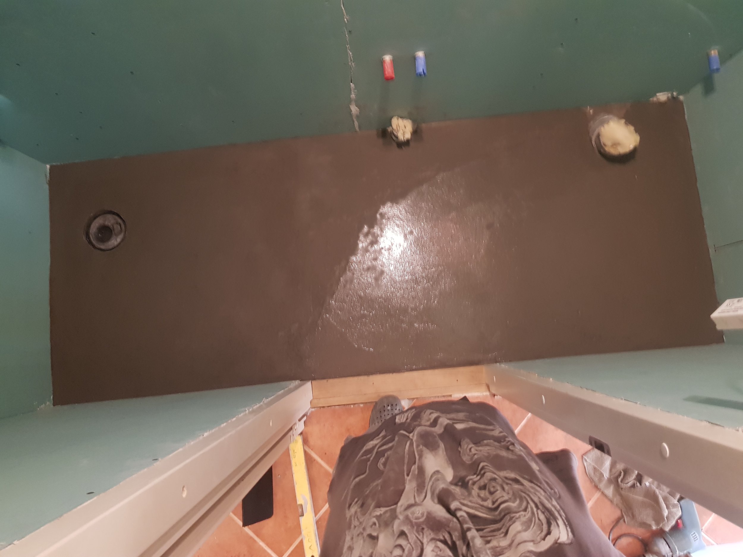 Vajalik vannitoas (laius 90 cm, pikkus 240 cm, kõrgus 230) paigaldada hüdroisolatsioon ja plaatida.
