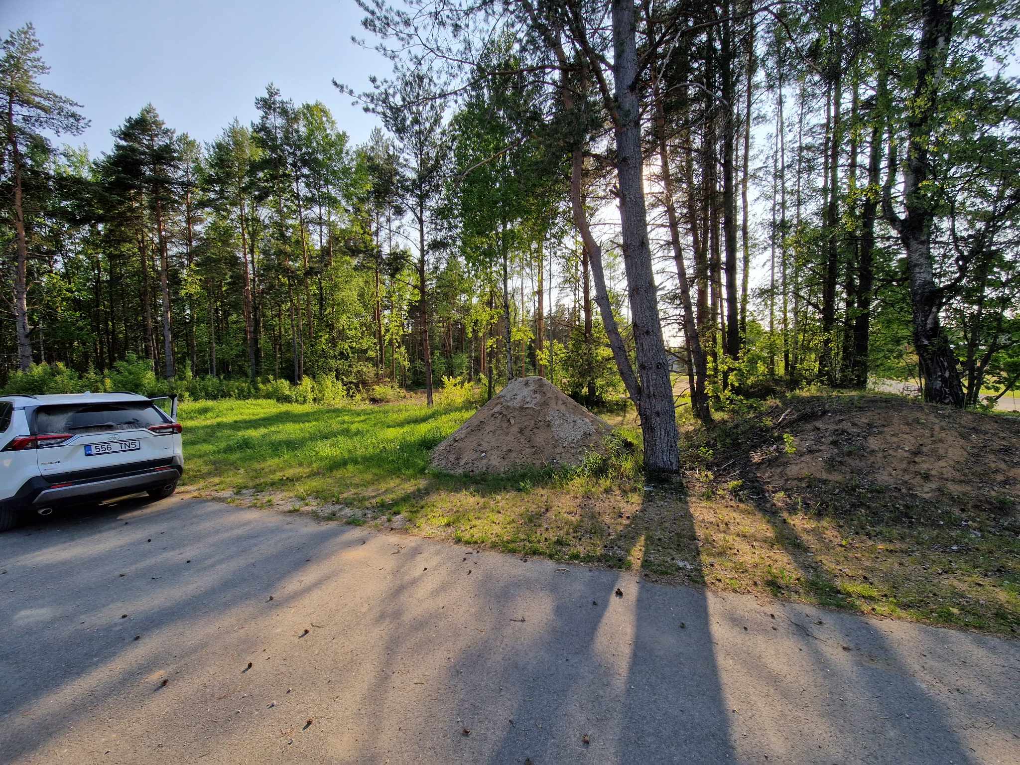 Krundi suurus on 1300 ruutmeetrit. Vaja oleks krundilt maha võtta enamik puid, noi palju juuri ka kui võimalik. Samuti peaks krundi kopaga tasandama, et oleks sobiv maja ehituse alustamiseks.