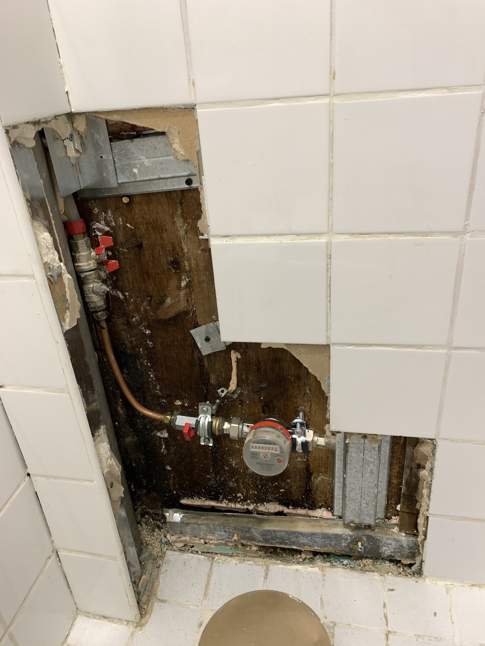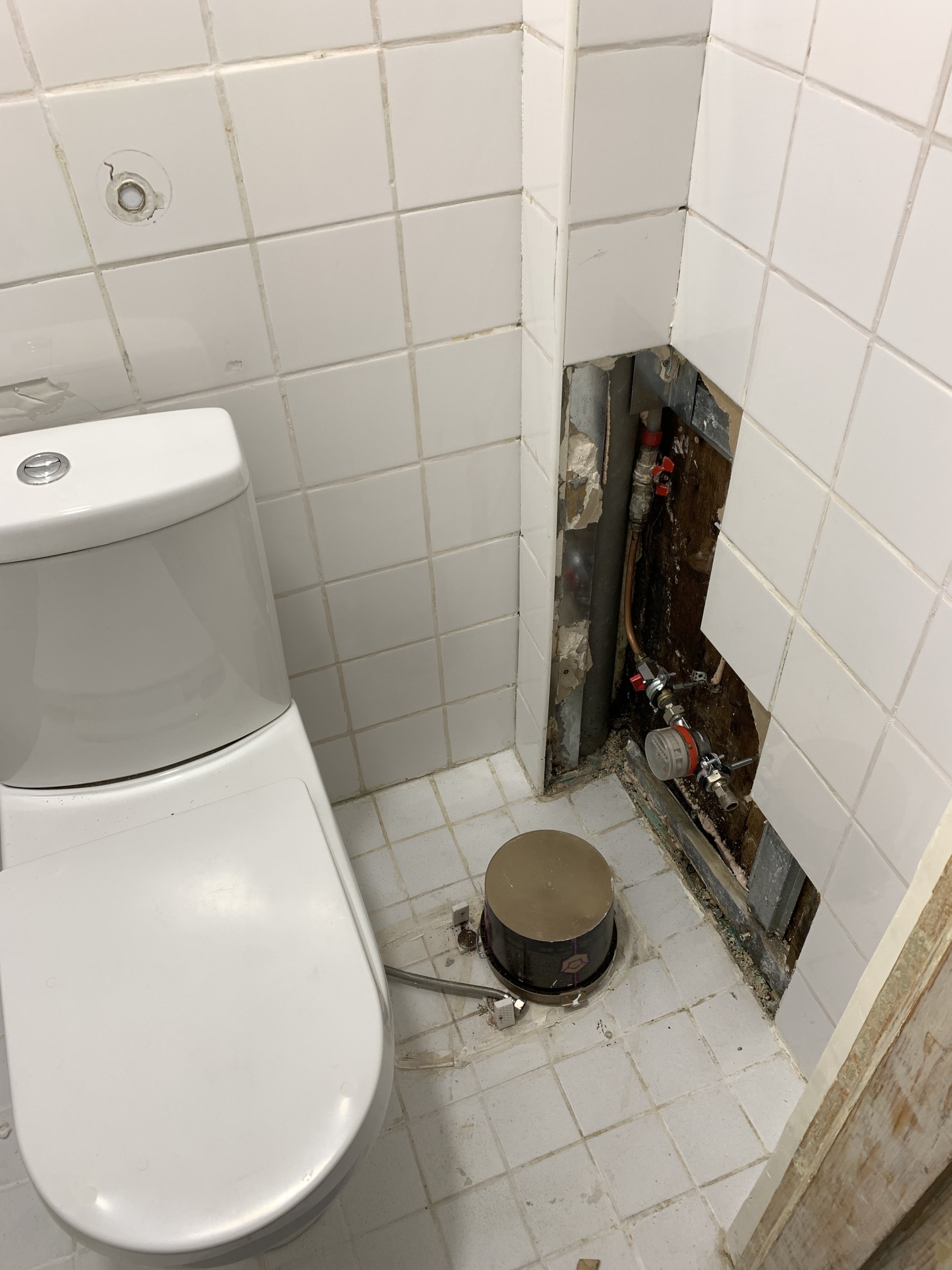 WC toru lekkimise tõttu oli vaja seina lammutada, et torumees saaks ligi.